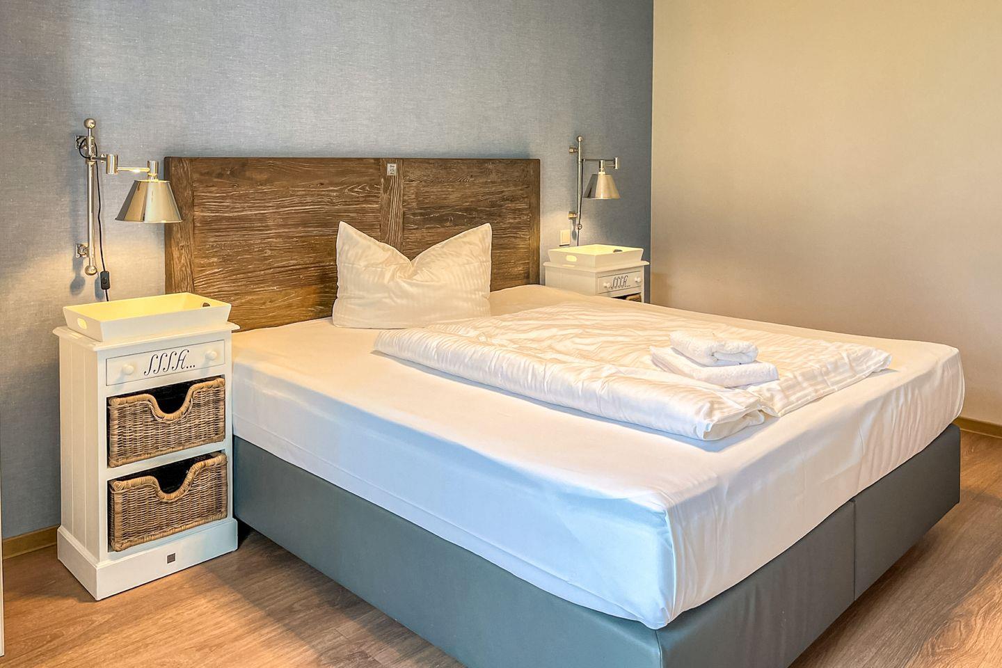 Im separaten Schlafzimmer findest Du ein komfortables Doppelbett (2x 90x200?cm) sowie einen zweiten Fernseher – perfekt für gemütliche Abende im Bett.