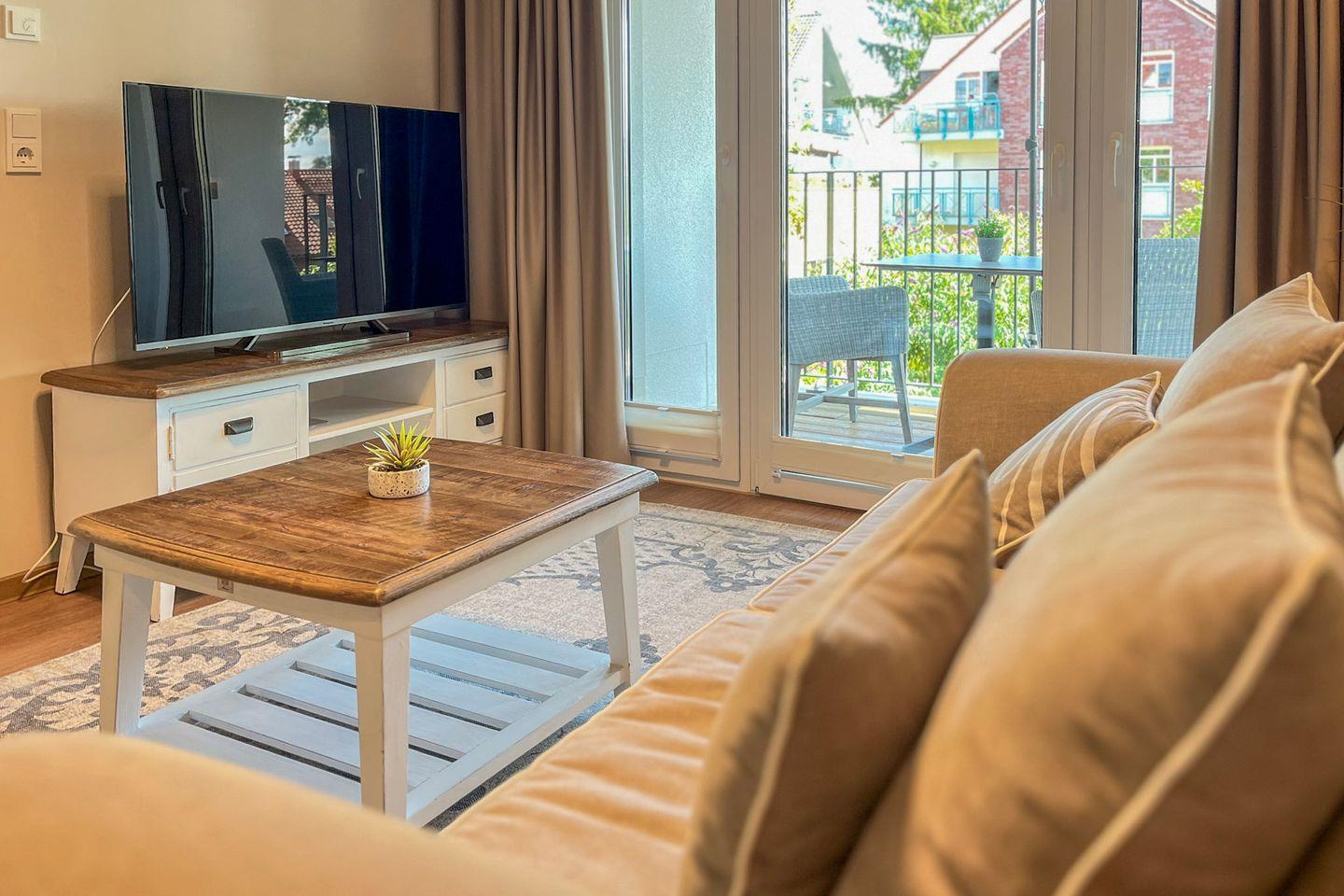 Gemütliche 2-Zimmer-Ferienwohnung mit Balkon und Wellnessbereich, nur 100 m vom Ostseestrand in Boltenhagen entfernt.