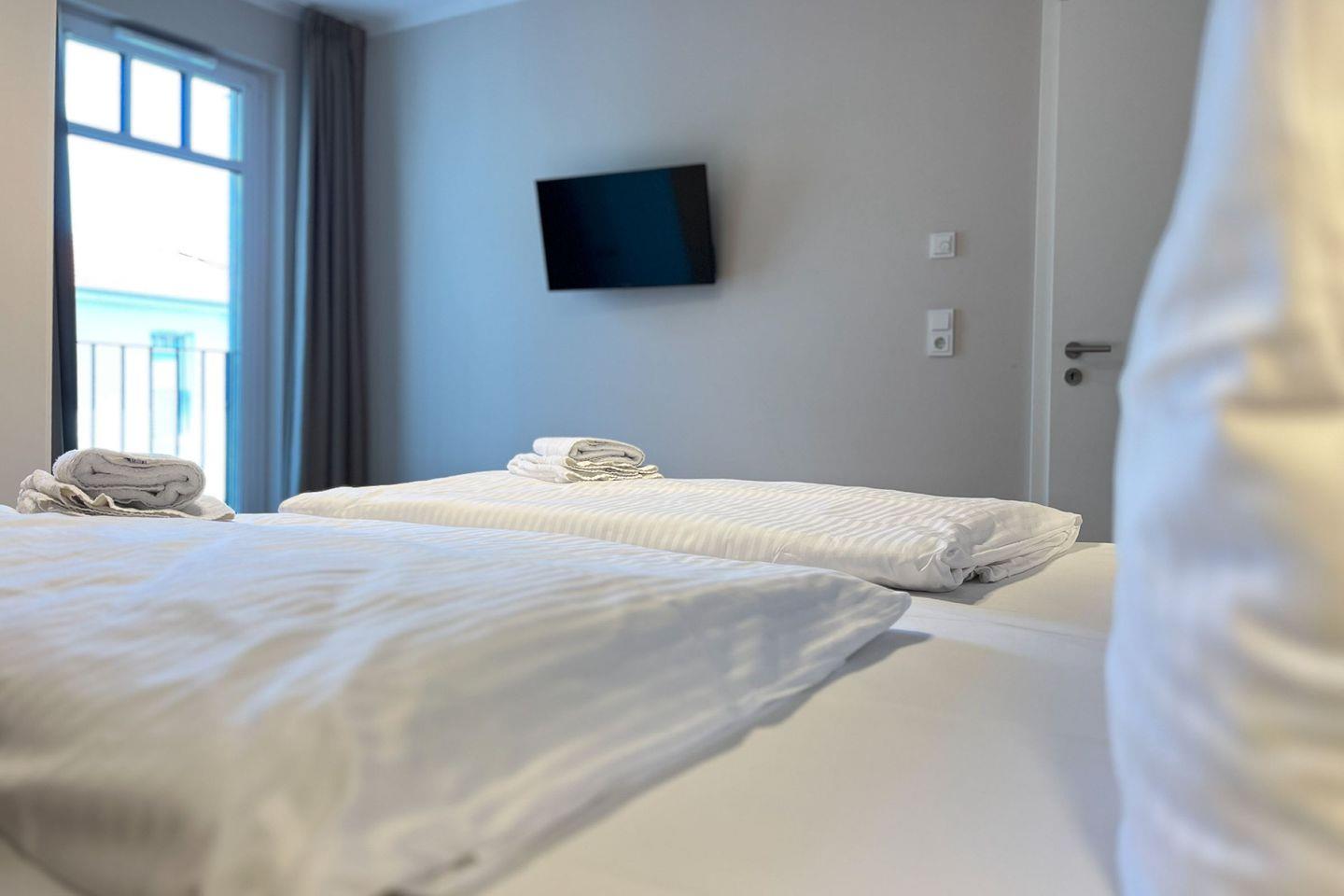 Im separaten Schlafzimmer erwartet Dich ein komfortables Doppelbett (2x 90x200?cm) sowie ein weiterer Fernseher – perfekt für entspannte Abende oder das Frühstück im Bett.