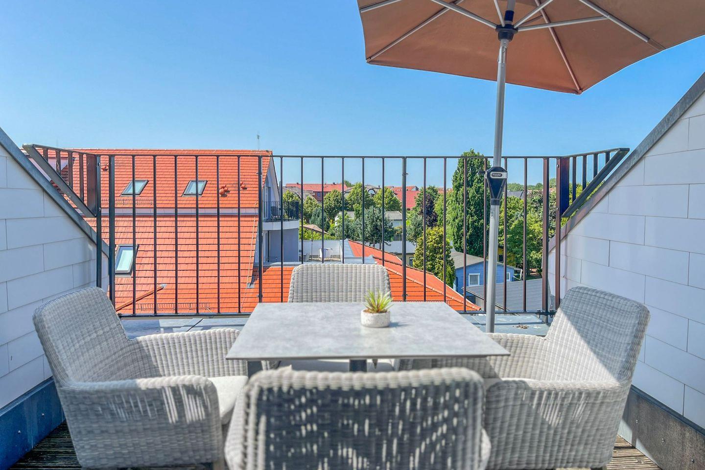 Ein schöner, möblierter Balkon lädt zum Frühstück an der frischen Luft oder einem Glas Wein am Abend ein.