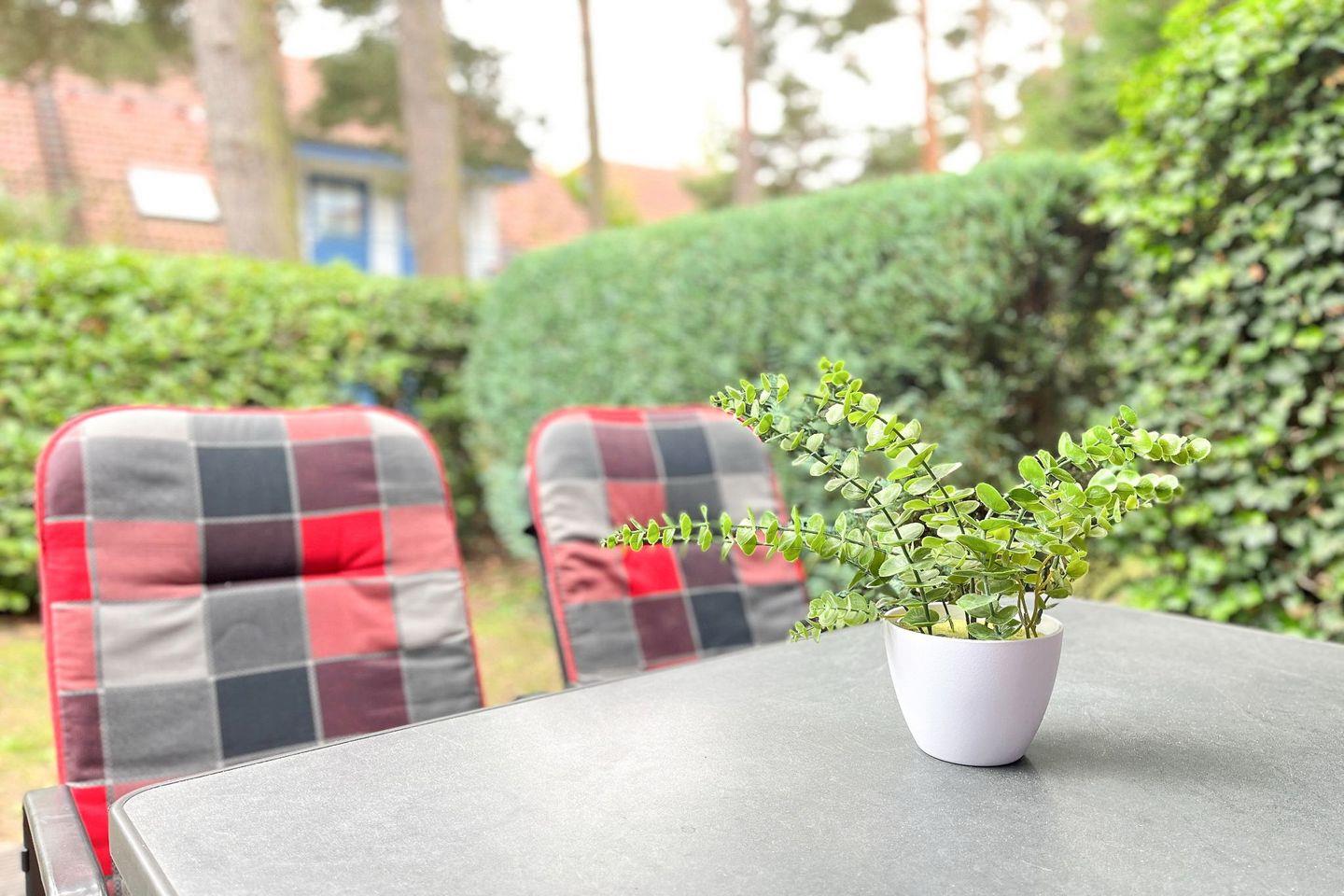 Die Feriendorf Papillon Wohnung 12-3 bietet auf 55 m² Platz für bis zu vier Personen. Sie verfügt über ein Schlafzimmer, einen hellen Wohnbereich mit offener Küche, eine eigene Terrasse sowie einen Parkplatz. WLAN, Geschirrspüler, gemeinschaftliche Waschmaschine und Trockner sowie ein Spielplatz runden das Angebot ab.