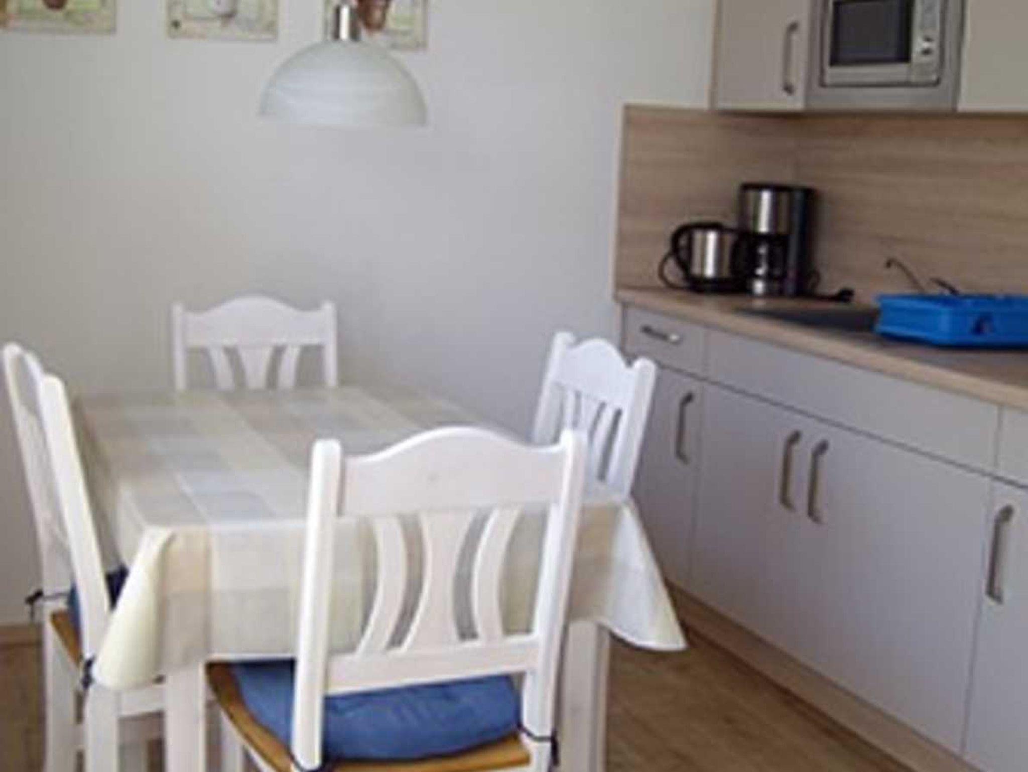 In der Ferienwohnung gibt es ein Bad mit Dusche. In den gemütlich eingerichteten Wohnraum ist eine kleine Küche integriert. Dort sind E-Herd/ Kühlschrank und Kaffeemaschine vorhanden. Sie kuscheln auf dem gemütlichen Sofa, schauen von der Terrasse auf den Breeger Bodden oder sind direkt an der Wasserkante und genießen hier Ihren Morgenkaffee - Urlaub, wie Sie es sich wünschen.