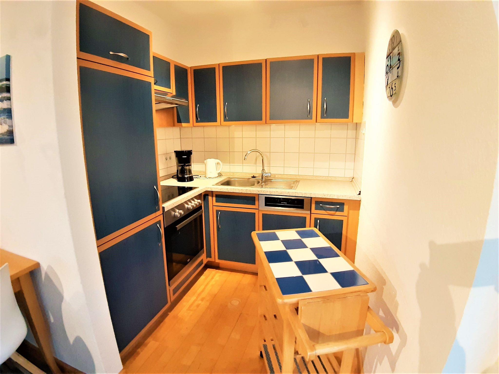 Die kleine Wohnung Abendrot liegt direkt hinter der Düne des Ostseestrandes in Juliusruh. Sie besitzt ein Schlafzimmer mit Doppelbett, einen Wohnbereich mit integrierter Küche und zwei Balkone zum Entspannen. Das Bad beherbergt eine Dusche.