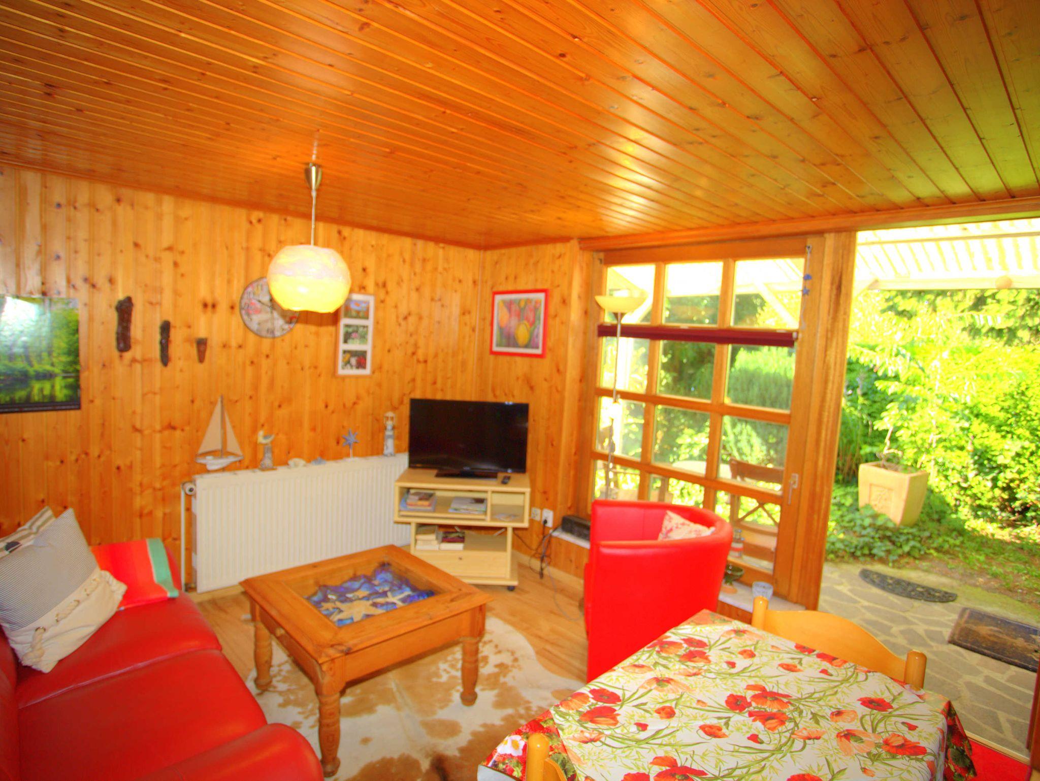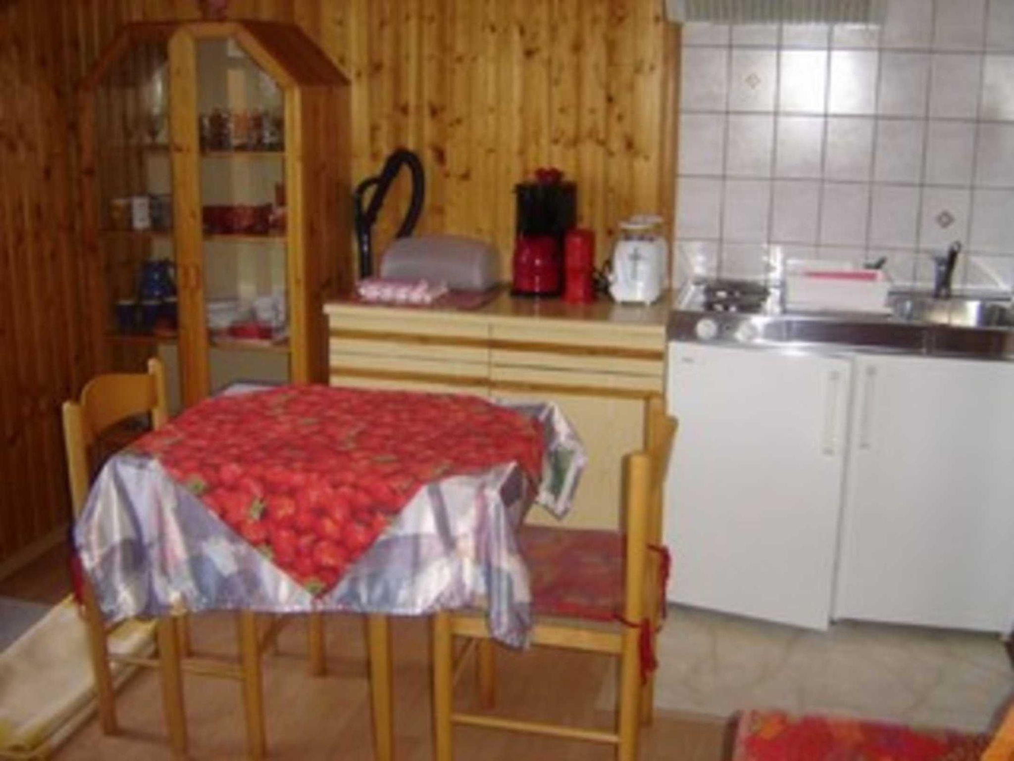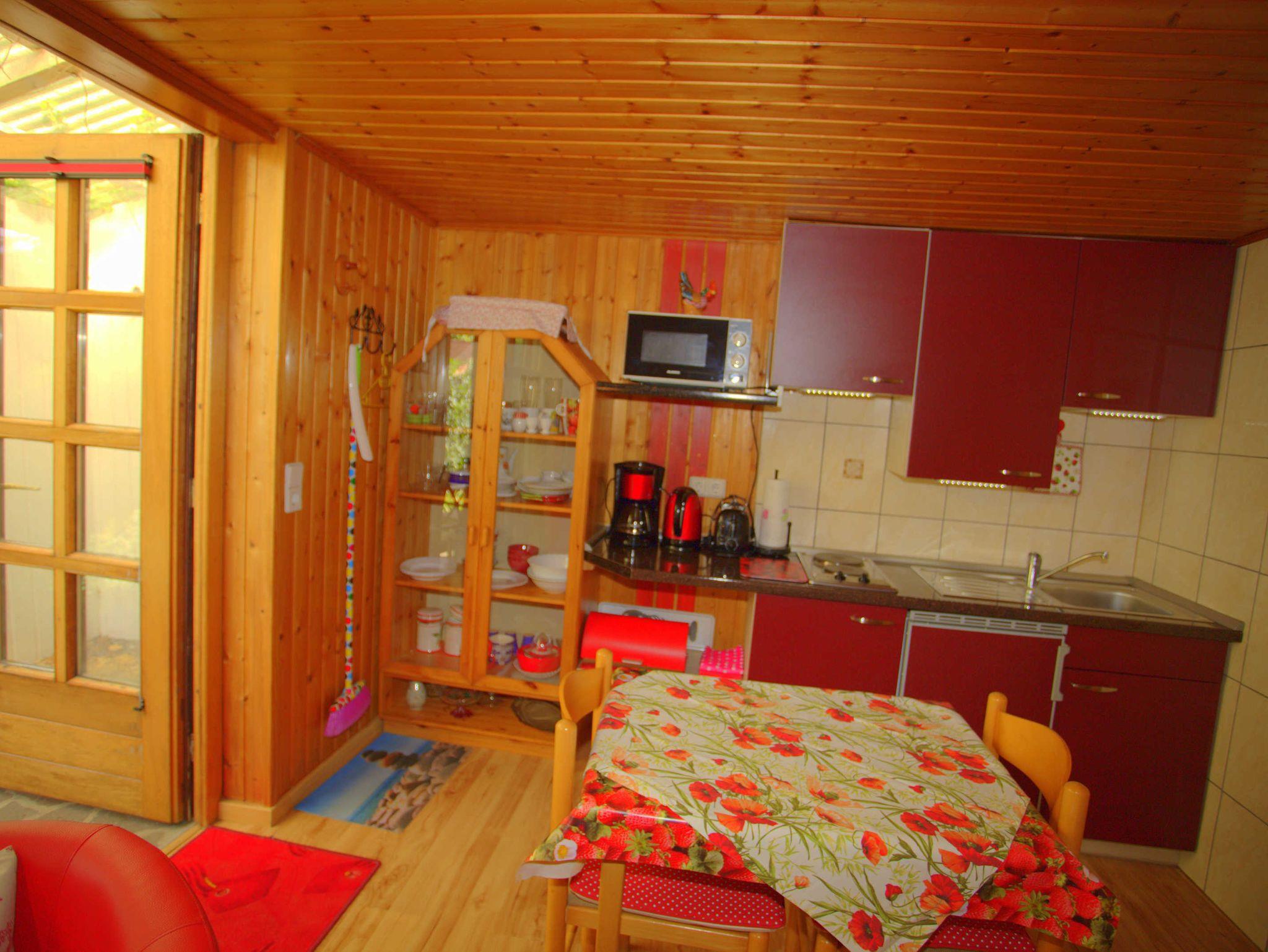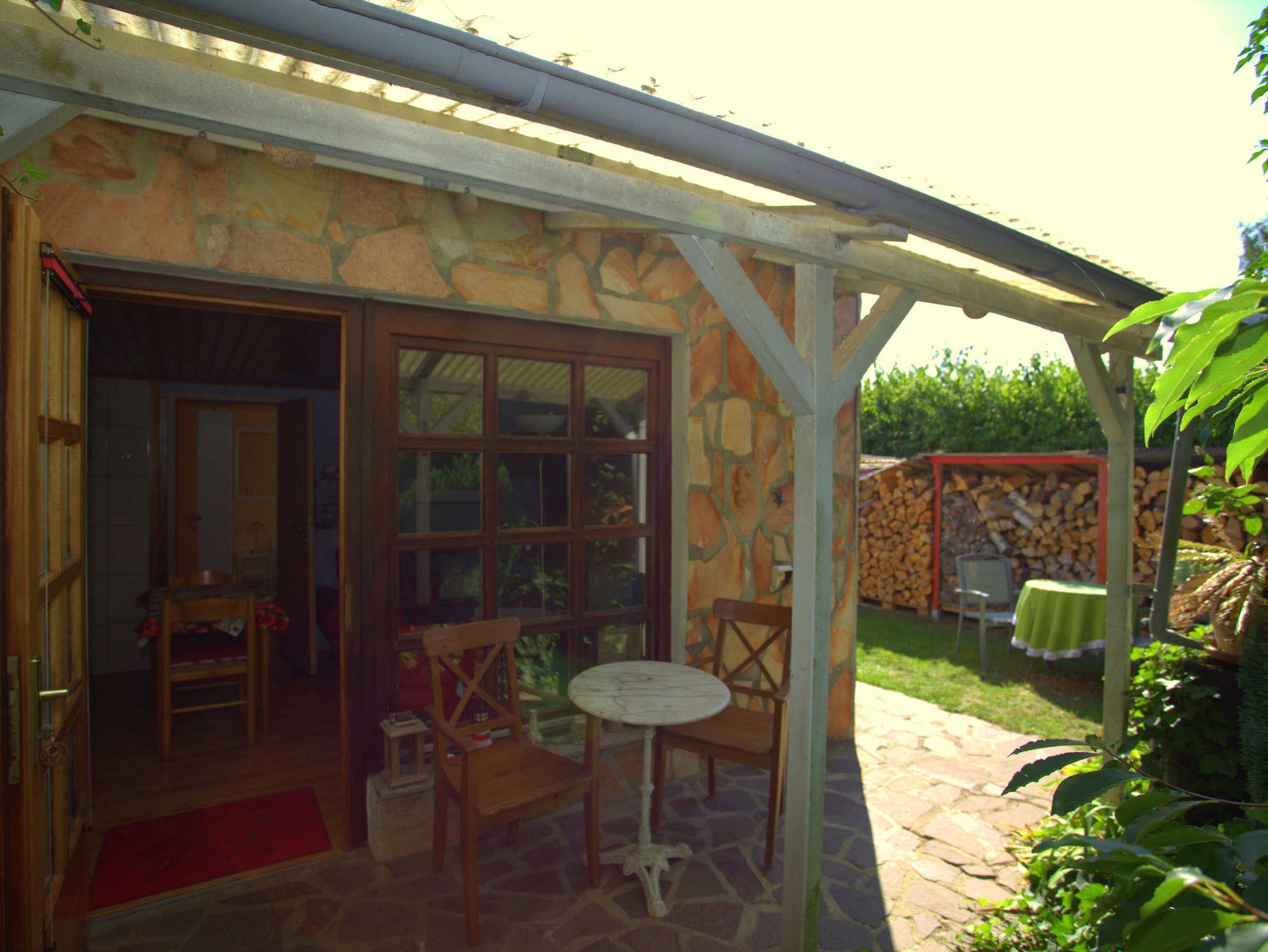 Die kleine Ferienwohnung ist mit 30qm bestens für zwei Personen geeignet. Sie besteht aus einem Wohn- und einem Schlafraum. In der Ferienwohnung gibt es ein Bad mit Dusche. In den gemütlich eingerichteten Wohnraum ist eine Miniküche integriert. Dort sind Kühlschrank und Kaffeemaschine vorhanden. Eine große Liegewiese mit Sonnenliegen und Gartenmöbeln können alle Urlaubsgäste nutzen.