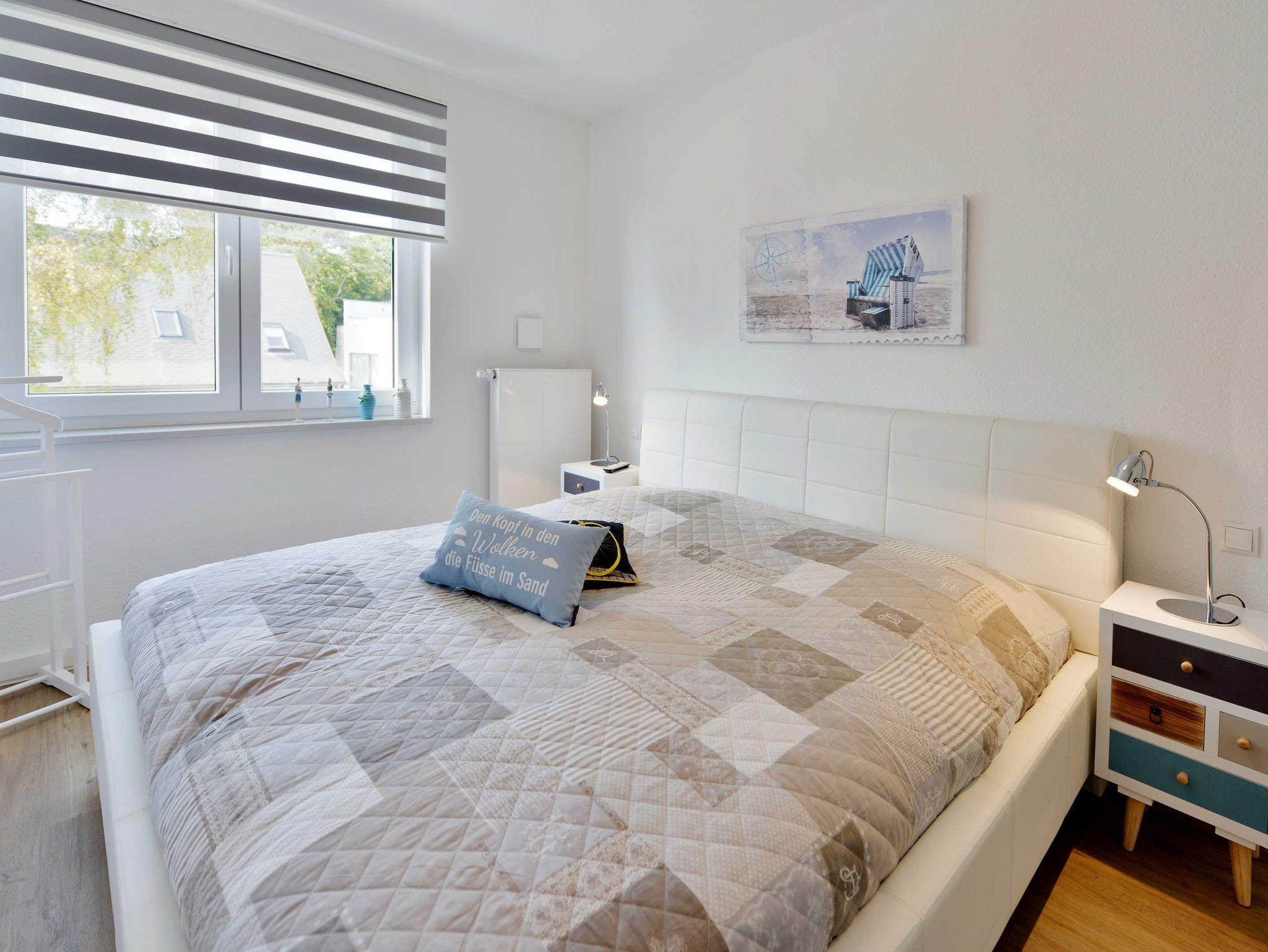 Die Ferienwohnung Urlaubsinsel besitzt im Schlafzimmer ein komfortables Doppelbett, im Wohnbereich befindet sich eine gemütliche Boxspring-Schlafcouch (145x240cm).