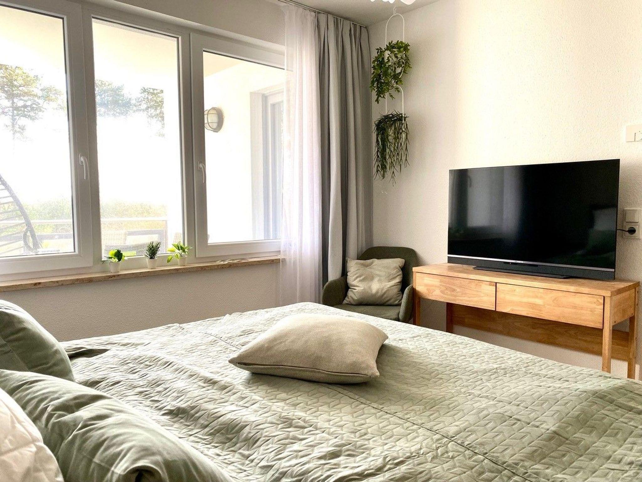 Sie besitzt einen Balkon mit z.T. Meerblick. Von hier aus genießen Sie den Blick über die Ostsee und verbringen eine entspannte Zeit.