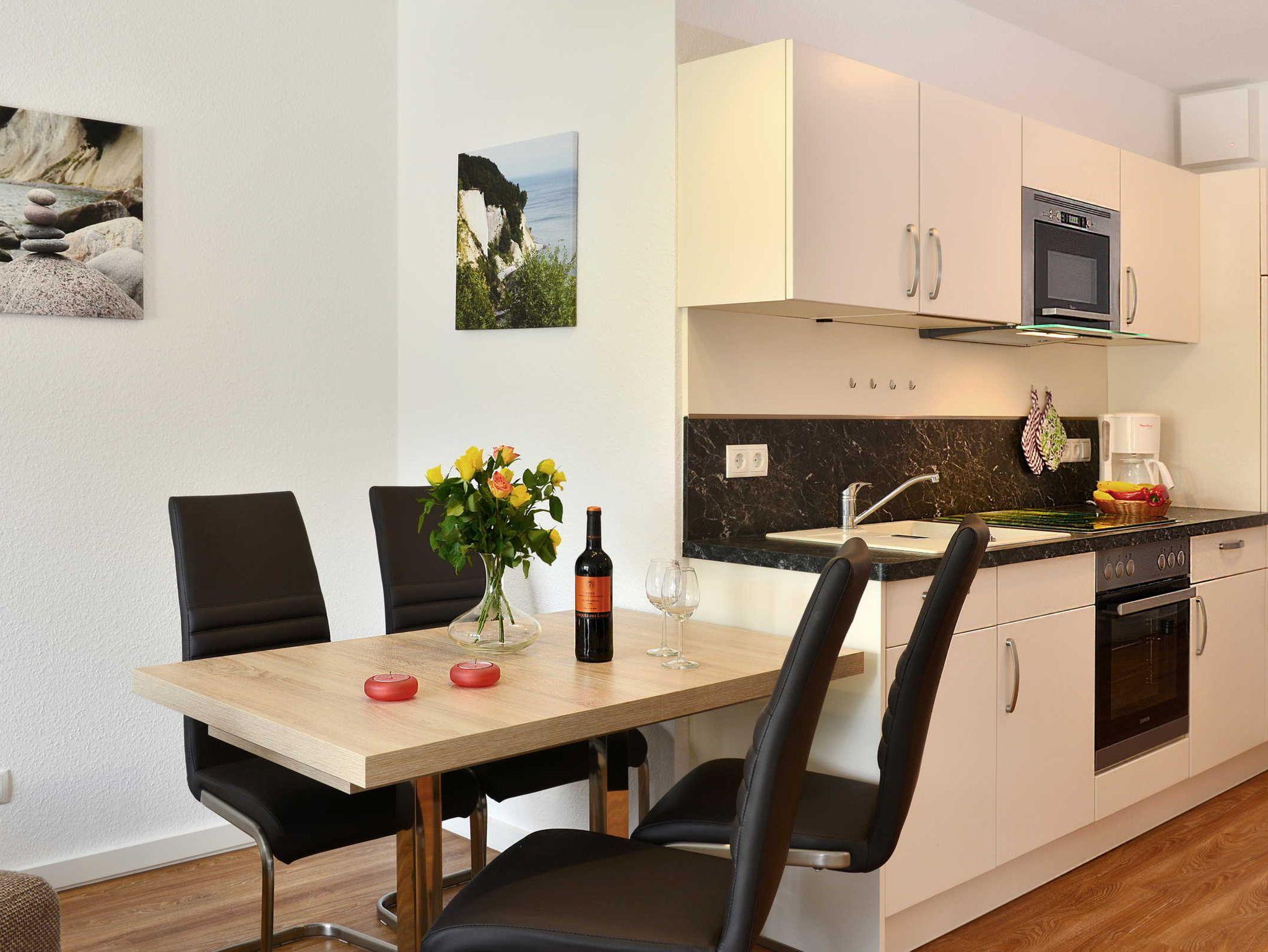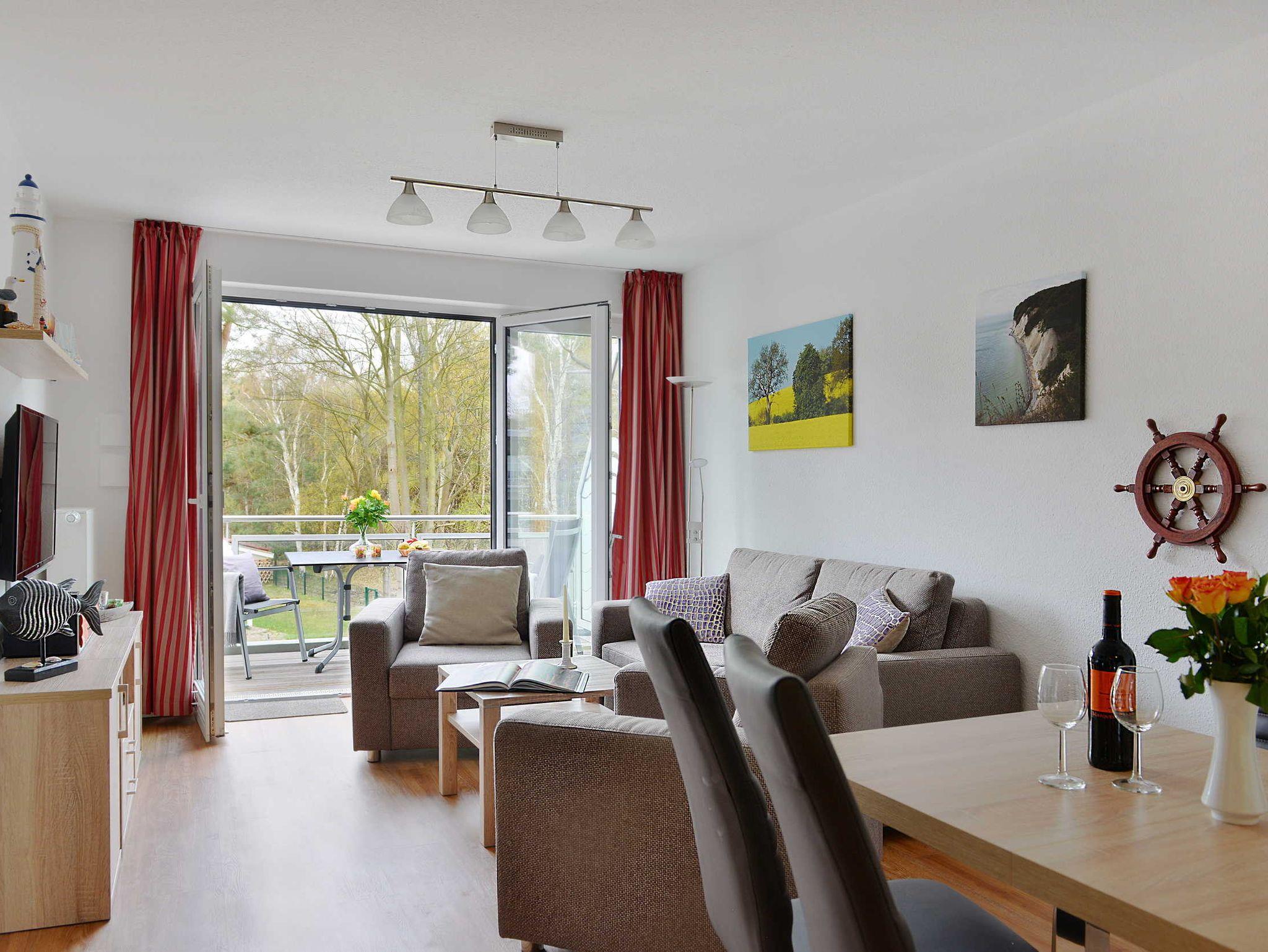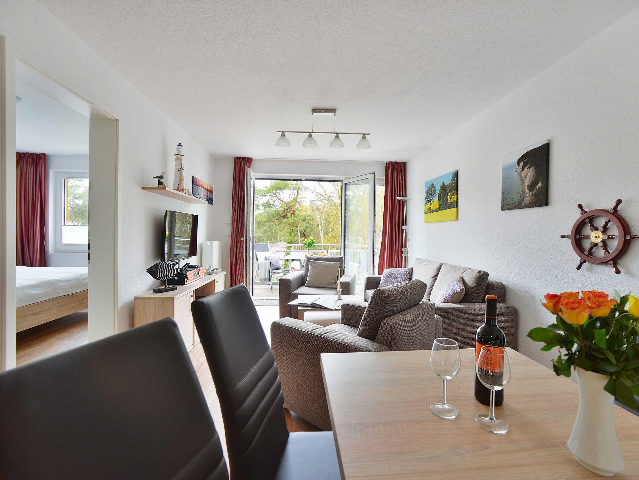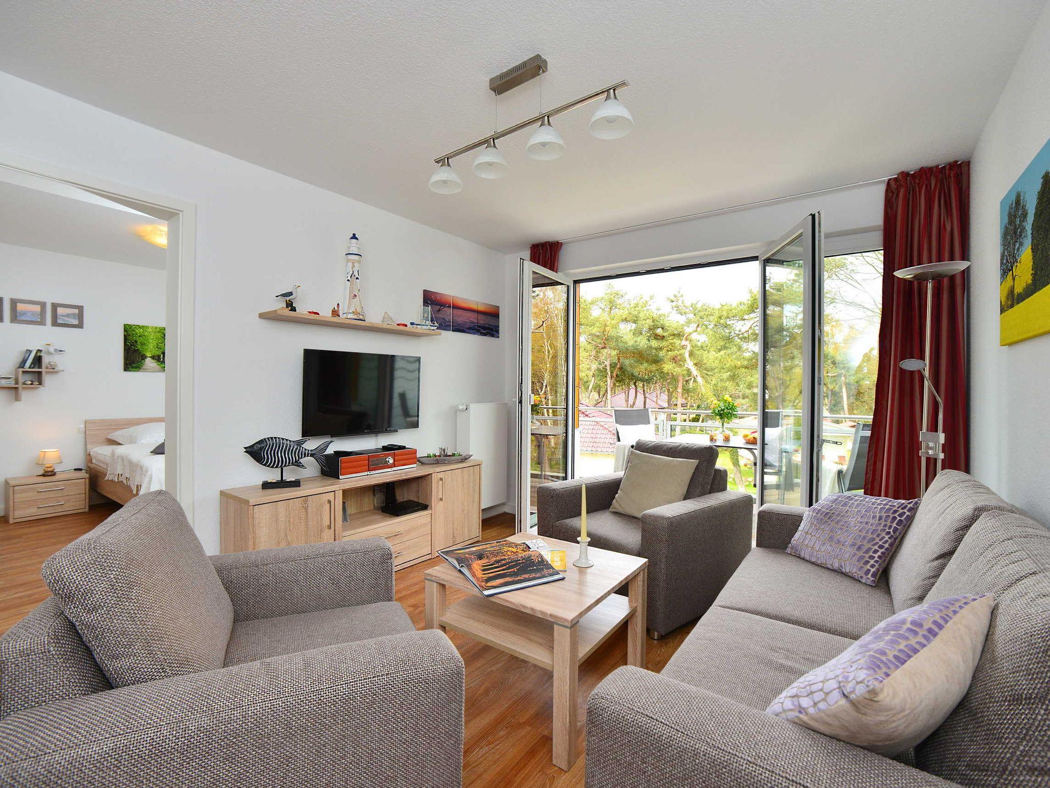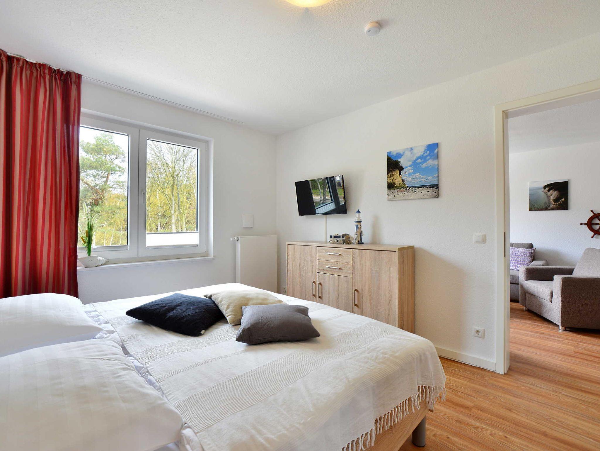 Die Suite Meeresblick in Juliusruh bietet gemütlichen Komfort mit Balkon und direktem Strandzugang.