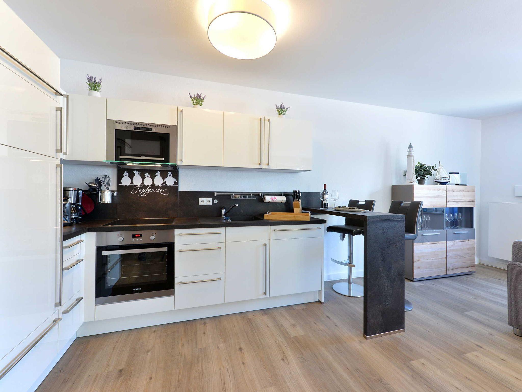 Küche mit Spülmaschine, Backofen, Mikrowelle,Filterkaffeemaschine