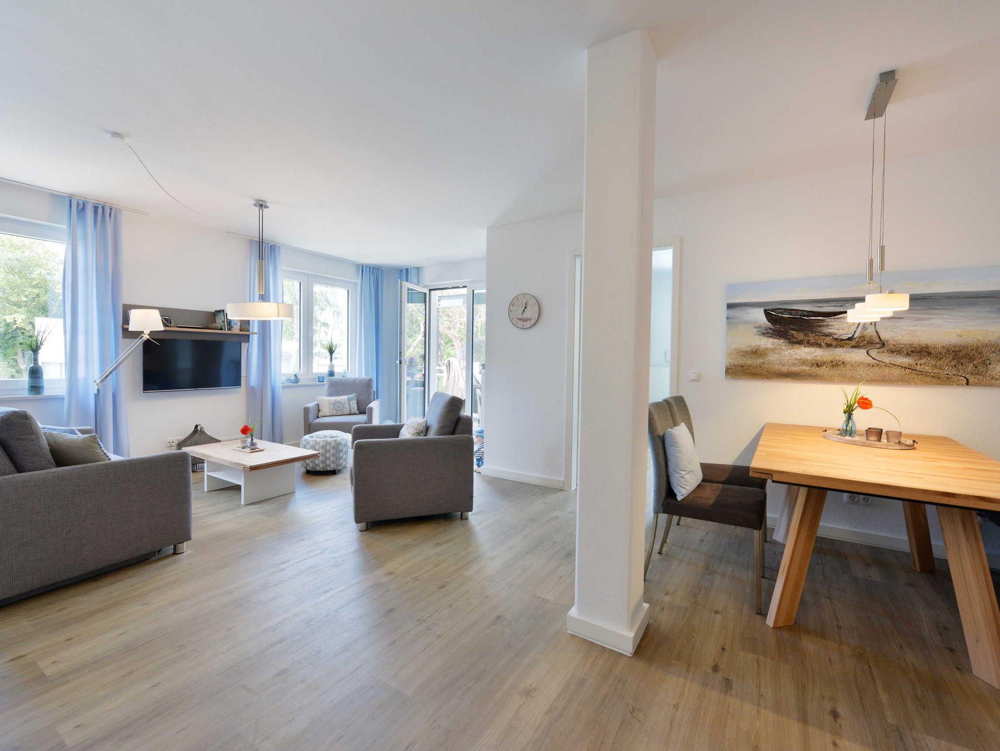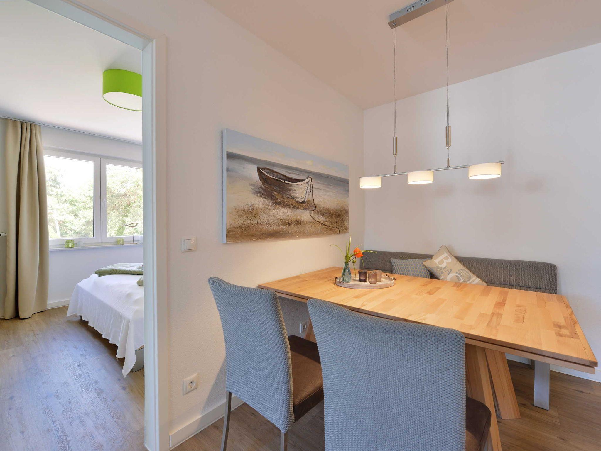 Ihr Urlaubsdomizil besitzt ein Schlafzimmer mit Doppelbett, im Wohnbereich finden Sie eine gemütliche Couch mit Schlaffunktion und einen Flatscreen-TV, einen Essbereich sowie die mit allen Annehmlichkeiten ausgestattete Küche.