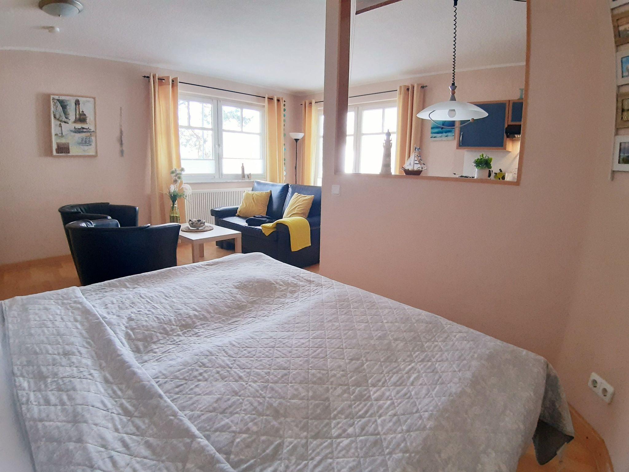 Wohn- und Schlafraum kombiniert mit integrierter Küche
