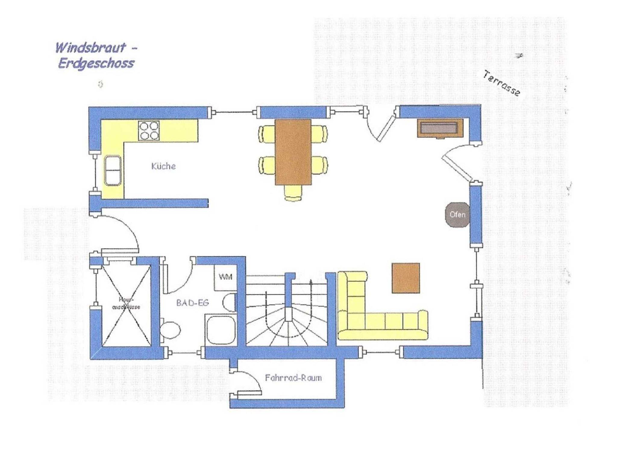 Im Erdgeschoss ist ein Bad vorhanden, welches mit Waschbecken, WC und einer Dusche sowie einer Waschmaschine ausgestattet ist.