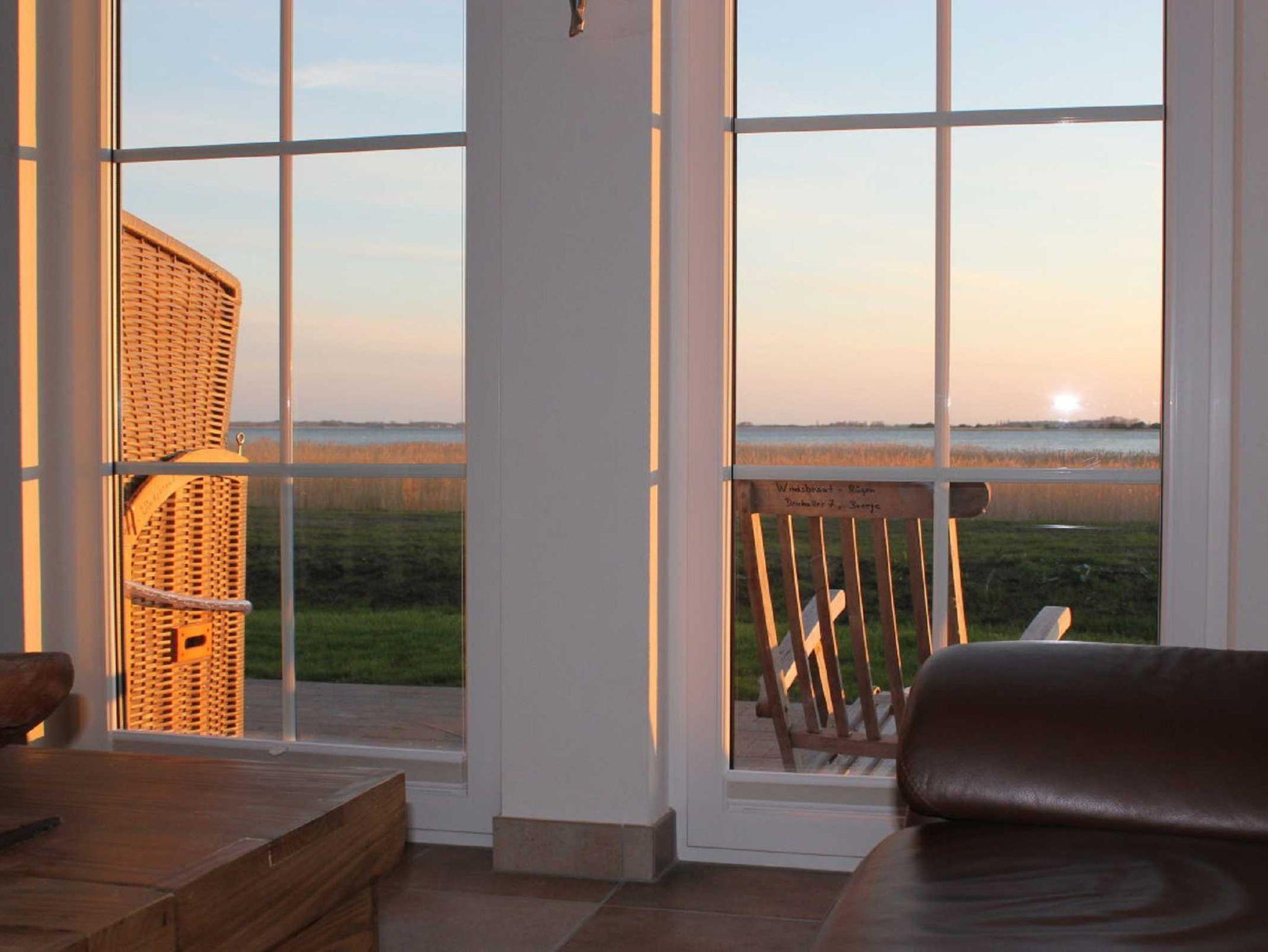 Das Licht durchflutete, liebevoll eingerichtete Wohnzimmer hat einen fantastischen Panoramablick auf den Breeger Bodden. Durch mehrere bodentiefe Fensterelemente haben Sie die Möglichkeit, von jedem Platz der großzügigen Sitzecke aus den einmaligen Wasserblick zu genießen.