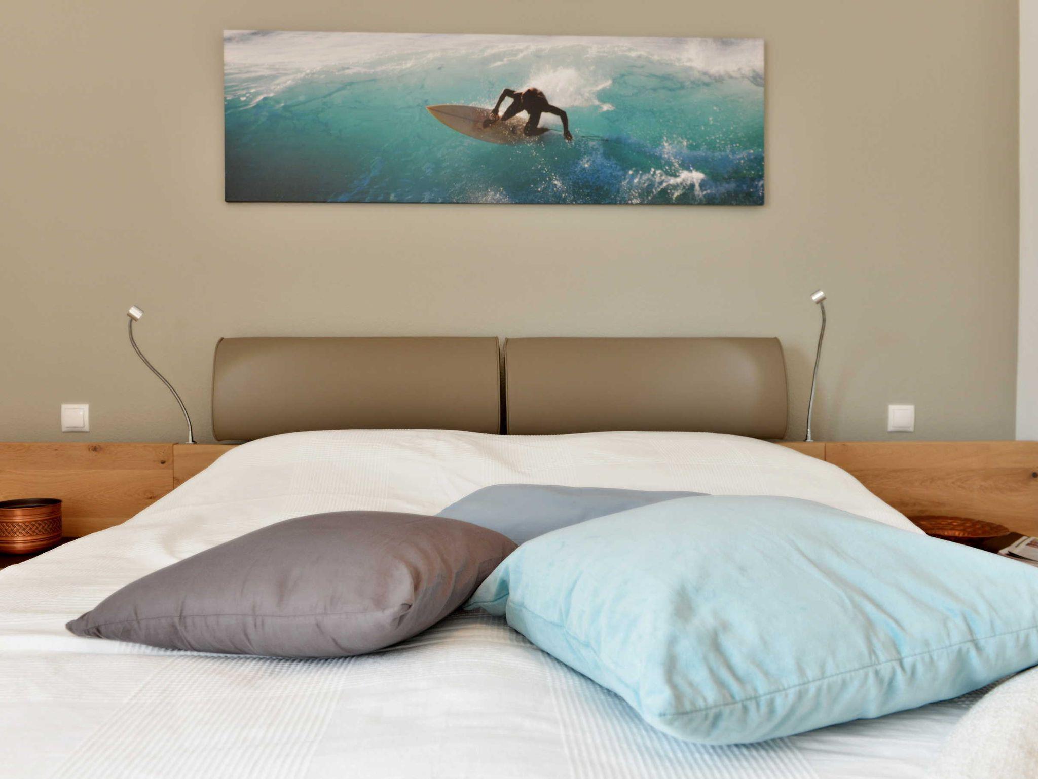 Die Strandwohnung Wassermusik besitzt im Schlafzimmer ein komfortables Doppelbett, im Wohnbereich befindet sich eine gemütliche Schlafcouch (140x200cm).