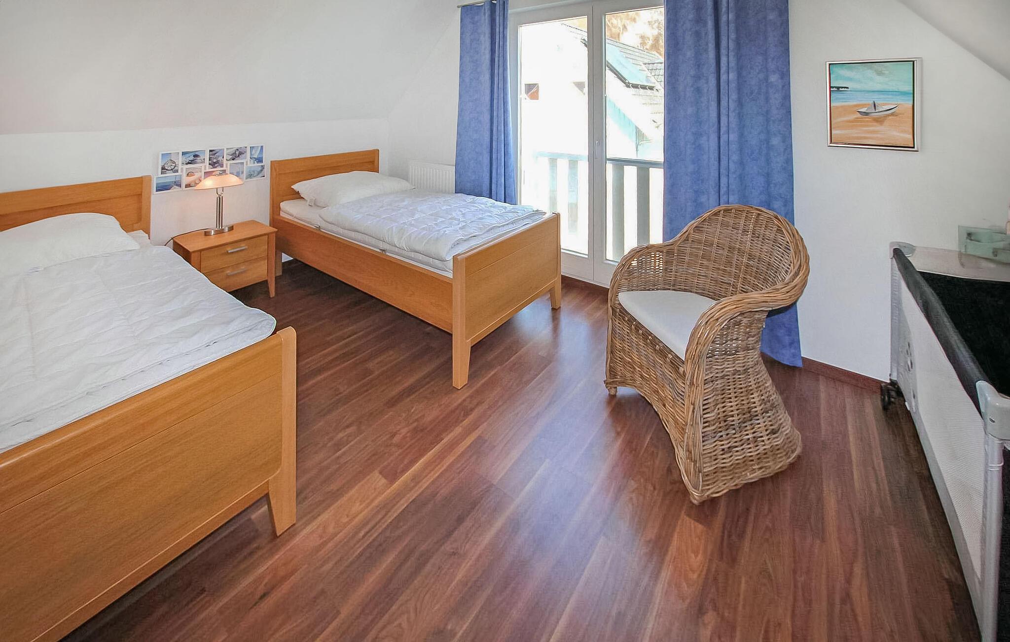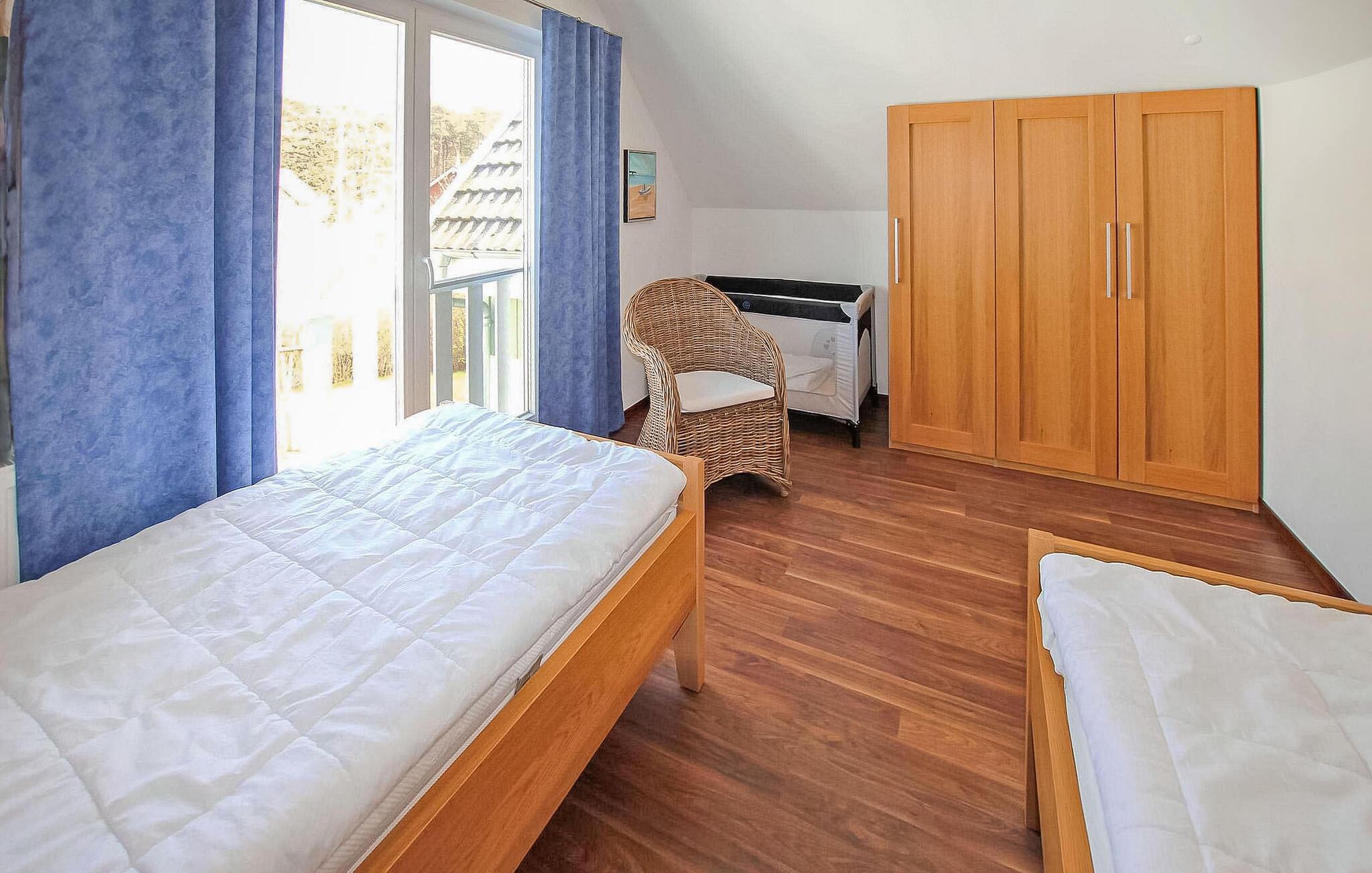 Die 2013 neu erbaute Doppelhaushälfte mit Blick auf den Jasmunder Bodden liegt in einer kleinen Ferienhaussiedlung, nur 5 Gehminuten vom Ostseestrand entfernt. Das Ferienhaus ist komfortabel und hochwertig eingerichtet und verfügt über ein Wohnzimmer (Polstermöbel mit Schlaffunktion, LCD-TV, Radio, Esstisch, Kamin), eine voll ausgestattete Küche (Elektroherd mit Backofen, Kühl-/Gefrierschrank, Geschirrspüler, Waschmaschine). , diverse Küchengeräte), 2 Schlafzimmer im Obergeschoss (1 x Doppelbett, 1 x 2 Einzelbetten) und 2 Badezimmer (1 x Dusche/WC und Sauna im Erdgeschoss, 1 x Badezimmer mit Badewanne im Obergeschoss) und Zentralheizung (Fußbodenheizung im Erdgeschoss). Für Kleinkinder kann ein Kinderbett und ein Hochstuhl bereitgestellt werden. Es gibt eine möblierte Terrasse und einen Parkplatz im Freien. Auch ein persönlicher Strandkorb an der Ostsee kann kostenfrei genutzt werden. Die Endreinigung ist im Gesamtpreis inbegriffen. Strom und Wasser werden vor Ort nach Verbrauch abgerechnet. Bettwäsche und Handtücher können mitgebracht oder gemietet werden. Breege/Juliusruh unterliegt der Kurtaxe.