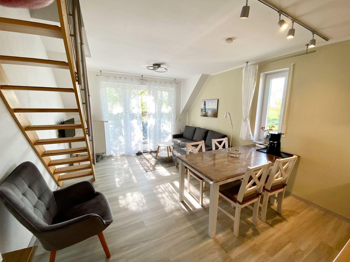 Gemütliche Ferienwohnung am Hafen von Breege auf Rügen mit Balkon und moderner Ausstattung.