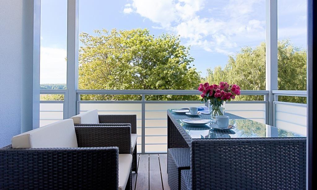 Moderne Ferienwohnung Blue Sky in Dierhagen mit Balkon, Strandnähe und hochwertiger Ausstattung für erholsame Tage zu zweit.