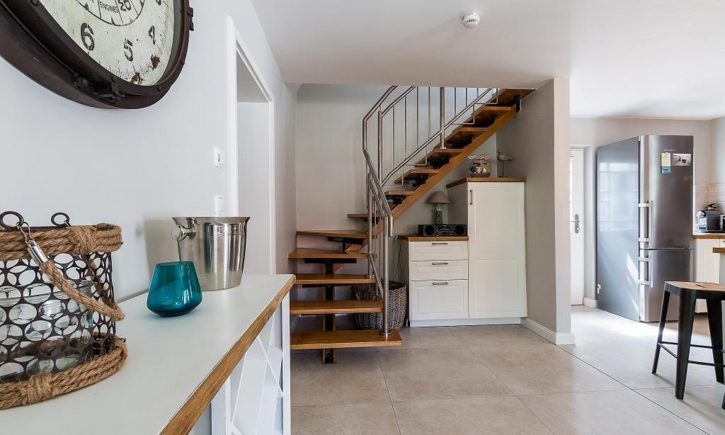 Das traumhafte Ferienhaus begeistert von außen wie von innen und passt sich mit seinen harmonisch abgestimmten Möbeln und Farben perfekt an die strandnahe Umgebung an. Im Erdgeschoss erwartet dich ein modern eingerichteter Wohn- und Essbereich. Der großzügige Esstisch und die gemütliche Couch am Kamin bieten gleich mehrere Sitz- und Kuschelgelegenheiten. Die offen gestaltete Küche ist hochwertig ausgestattet und besitzt alles, um auch im Urlaub mit Genuss und Freude zu Kochen. Ein Schlafzimmer mit einem Boxspring-Doppelbett sowie zwei Tageslichtbäder, jeweils mit Dusche/WC befinden sich ebenfalls im Erdgeschoss. Über eine Treppe gelangst du vom Wohnbereich ins Obergeschoss. Hier befinden sich ein weiteres komfortables Schlafzimmer mit einem Doppelbett sowie ein liebevoll gestaltetes Durchgangszimmer mit einem Boxspring-Einzelbett und einem Juniorbett.