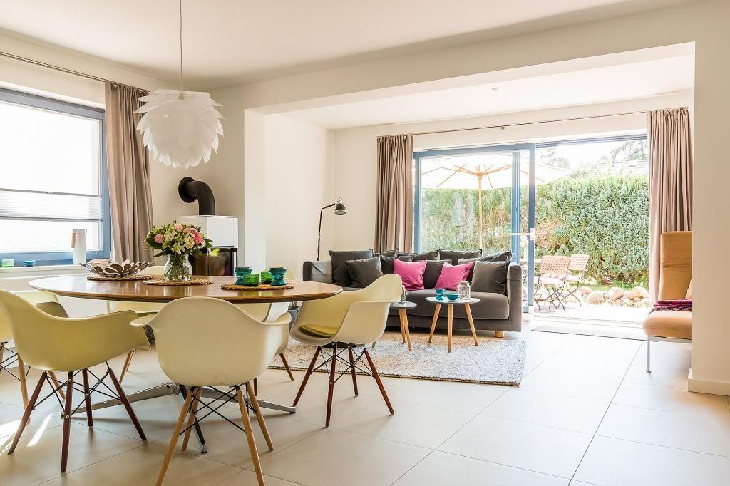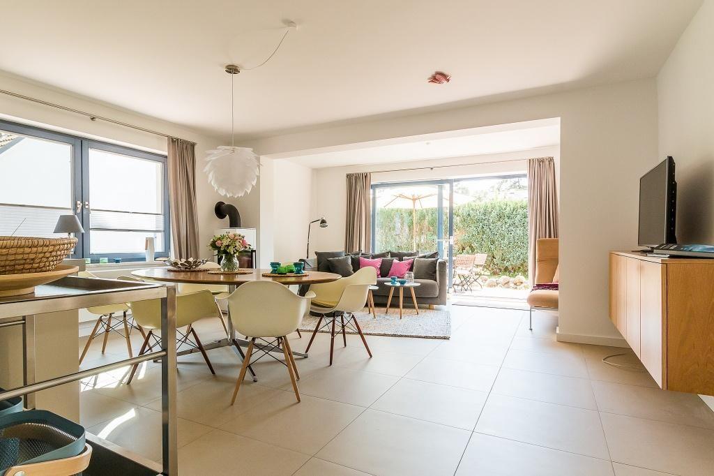 Die Erdgeschosswohnung begeistert durch ihren Mix aus schlichter Eleganz und skandinavischer Gemütlichkeit. In dem großzügigen Wohn- und Essbereich erwarten dich zwei gemütliche Sofas am Kaminofen und bodentiefe Fernster. Die hochwertige Küchenzeile ist im Wohnraum integriert und bietet dir zusammen mit dem Esstisch einen kommunikativen Raum zum Essen, Kochen und Klönen. Natürliche Materialien wie Holz und Rattan finden sich auch in den zwei modernen Schlafzimmern wieder, die mit einem Doppelbett und zwei Einzelbetten ausgestattet sind. Hier lässt es sich wunderbar vom Urlaub träumen. Ein Badezimmer mit Dusche/WC und Handtuchtrockner machen den Wohnkomfort perfekt.