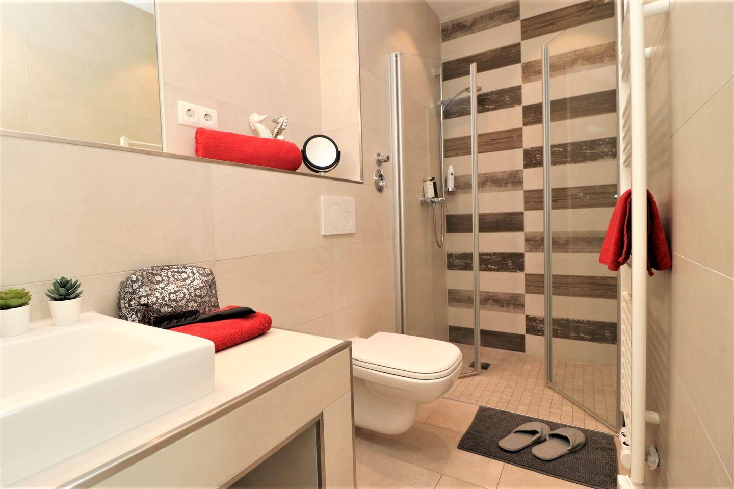 Das moderne Badezimmer ist mit Dusche und WC ausgestattet und rundet den Wohnkomfort des Appartements ab.