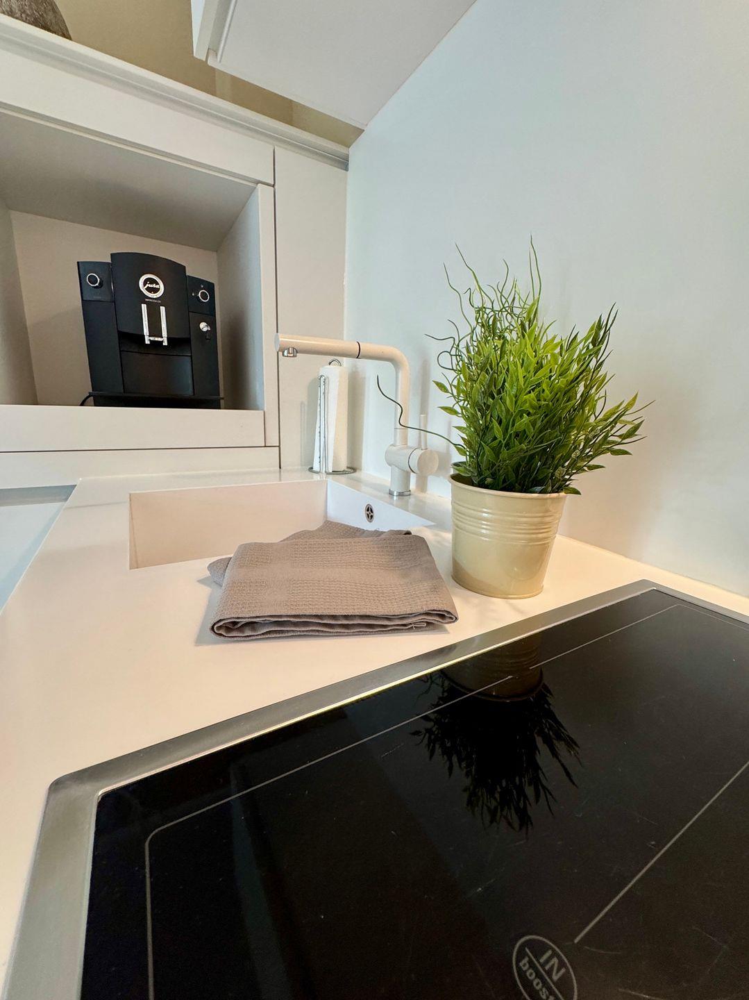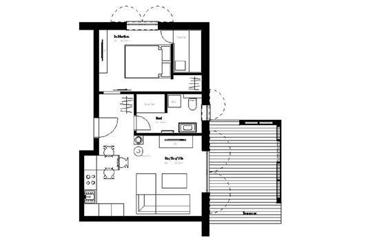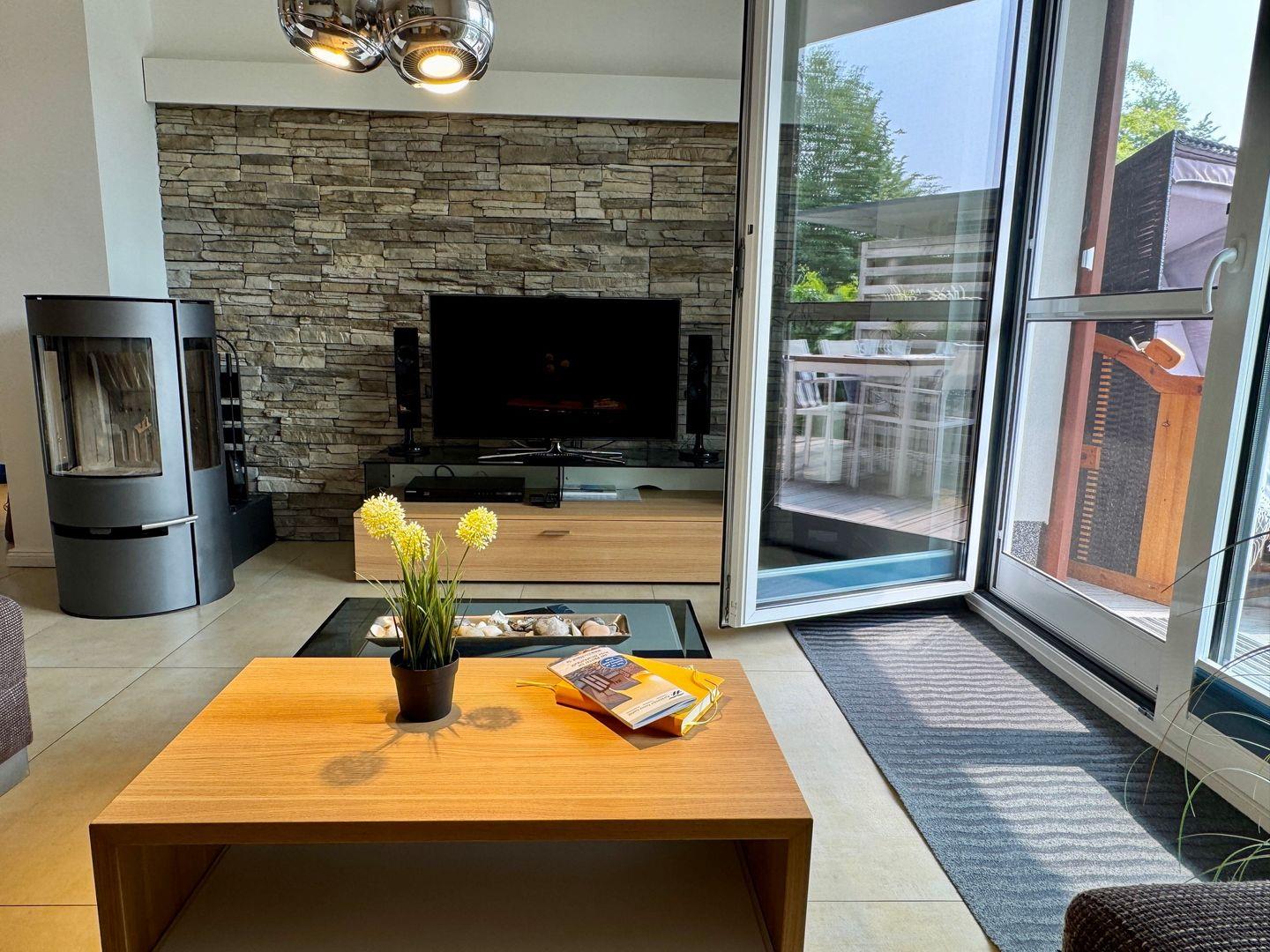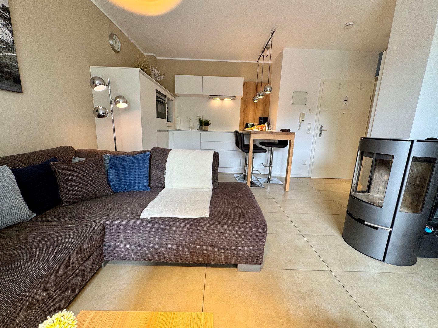 Willkommen in Ihrem gemütlichen Appartement mit einer großzügigen Fläche von 54 qm, ideal für bis zu 4 Personen. Das Appartement befindet sich im Erdgeschoss der Anlage und bietet Ihnen eine einladende Süd-Ost-Terrasse, perfekt für entspannte Stunden im Freien. Im Inneren erwartet Sie ein helles Wohnzimmer, das mit einer komfortablen Schlafcouch ausgestattet ist und nahtlos in die Küchenzeile übergeht. An kühleren Tagen sorgt der Kamin für eine wohlige Wärme und eine behagliche Atmosphäre. Das Schlafzimmer ist mit einem bequemen Doppelbett ausgestattet und bietet Ihnen einen Rückzugsort zum Entspannen. Ein besonderes Highlight ist die private Sauna im Schlafzimmer, die Ihnen die Möglichkeit bietet, nach einem langen Tag zu entspannen. Das Badezimmer verfügt über eine Dusche, WC und eine Waschmaschine, was Ihren Aufenthalt noch komfortabler macht. Ein Pkw-Stellplatz ist direkt auf dem Grundstück vorhanden, ebenso wie ein abschließbarer Schuppen für Ihre Fahrräder. Bitte beachten Sie, dass Haustiere und das Rauchen in diesem Appartement nicht gestattet sind. Für Ihre Unterhaltung und Verbindung zur Außenwelt steht Ihnen kostenfreies W-Lan zur Verfügung. Bettwäsche und ein Handtuchset pro Person sind im Mietpreis enthalten.