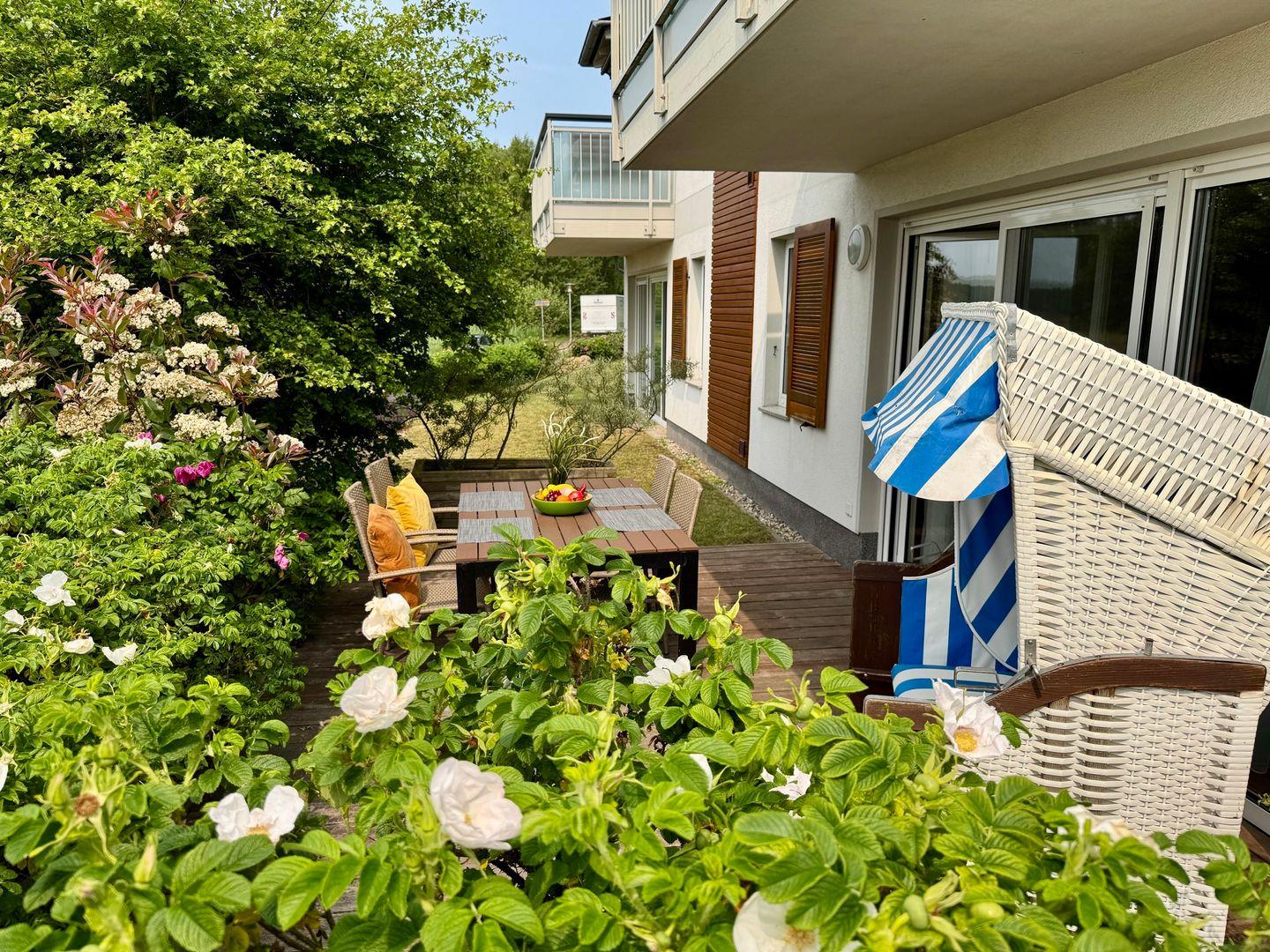Gemütliche Ferienwohnung mit Terrasse und Strandkorb direkt hinter dem Deich in Ostseebad Dierhagen.