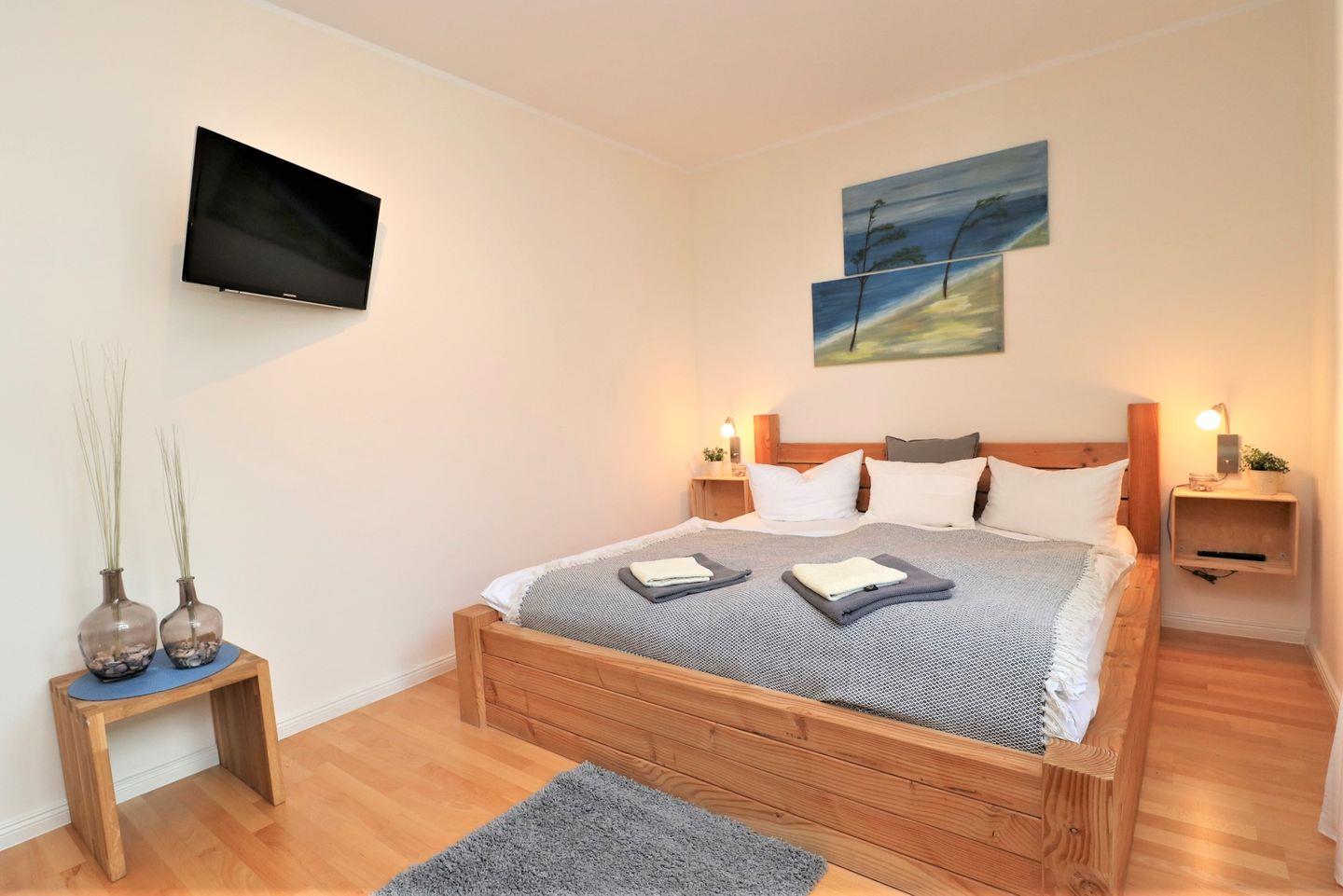 Dieses einladende Appartement hat eine Größe von ca 48m² und verfügt über ein Schlafzimmer mit einem komfortablen Doppelbett sowie ein Badezimmer mit Dusche und WC. Im Wohnzimmer erwartet Sie eine Schlafcouch, die zusätzlichen Platz für Gäste bietet, sowie eine gut ausgestattete Küchenzeile. An kühleren Tagen können Sie es sich am Kaminofen gemütlich machen und die wohlige Wärme genießen. Der Balkon lädt dazu ein, laue Sommerabende in entspannter Atmosphäre zu verbringen. Von Mai bis Oktober steht Ihnen am Strand kostenlos ein Strandkorb (Nr. 539) zur Verfügung, damit Sie die Sonne und das Meer in vollen Zügen genießen können. Bitte beachten Sie, dass Rauchen und Haustiere in diesem Appartement nicht gestattet sind. Für Ihre Verbindung zur Außenwelt steht Ihnen kostenloses W-LAN zur Verfügung.