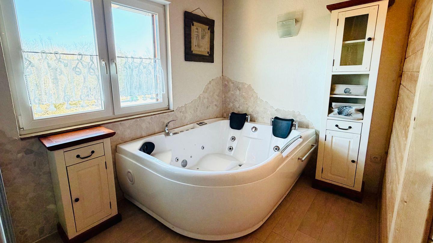 Ein besonderes Highlight sind die Sauna und der Whirlpool, die für pure Entspannung sorgen. Auf dem Balkon oder beim Grillen können Sie die frische Meeresluft genießen.