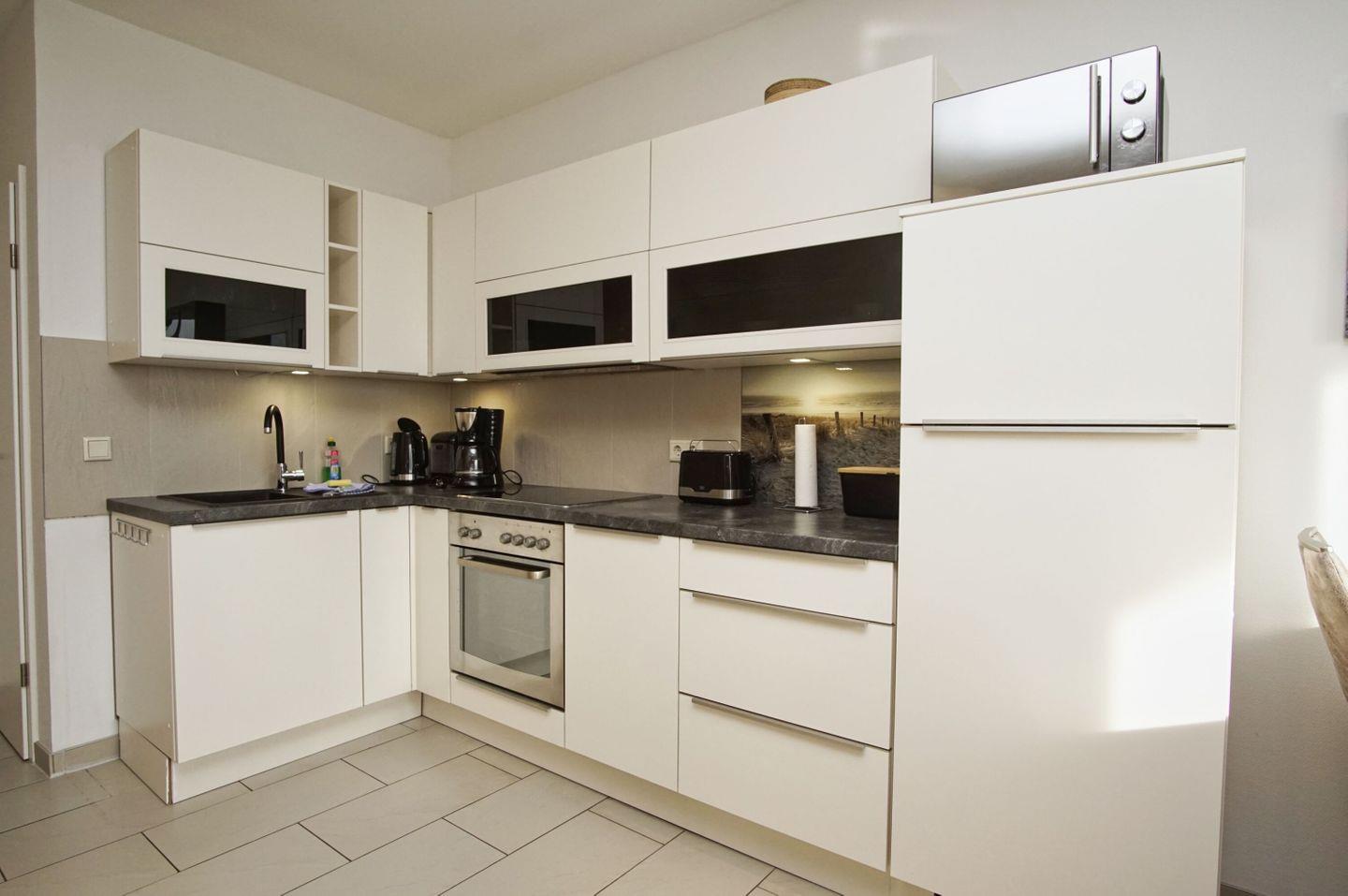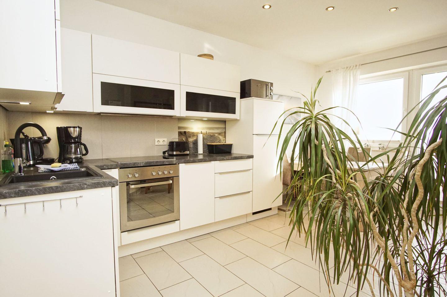 KÜCHE // offene Küche, 4-Felder Cerankochfeld, Backofen, Kühlschrank mit Gefrierfach, Geschirrspüler, Mikrowelle, Toaster, Wasserkocher, Kaffeemaschine, reichlich Besteck, Geschirr und Küchenutensilien ++