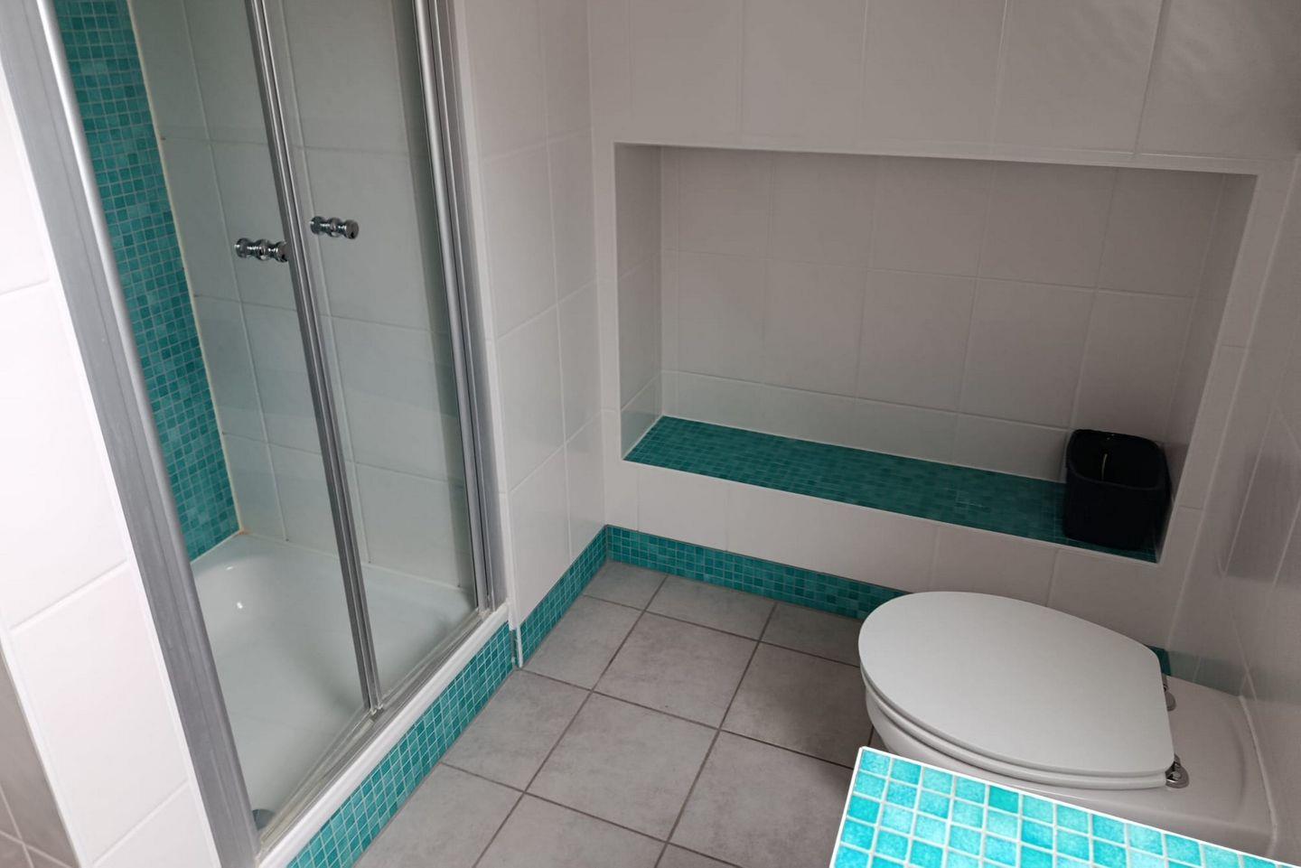 Das Ferienhaus mit Terrasse und Garten verfügt über zwei Geschosse und zwei Badezimmer: ein Bad mit Dusche und Doppelwaschbecken im Dachgeschoss, ein zweites Bad mit Dusche im Erdgeschoss. Die drei separaten Schlafzimmer (ein Schlafzimmer mit Doppelbett, ein Schlafzimmer mit zwei Einzelbetten und ein Kinderzimmer mit zwei Einzelbetten) können auf Anfrage und gegen Entgelt zusätzlich mit zwei Kinderbetten aufgestockt werden. Einen Hochstuhl könnt ihr auf Wunsch entgeltlich dazu buchen.
