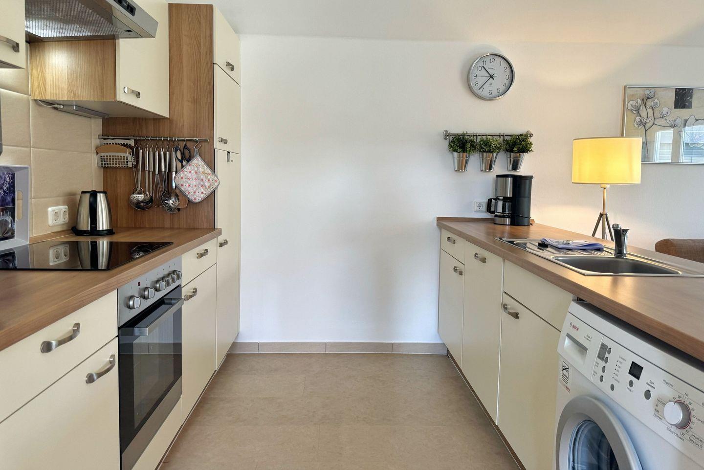 Eine voll ausgestattete separate Küche mit Kaffeemaschine, Toaster, Wasserkocher, Backofen, Mikrowelle, Geschirrspüler, Tiefkühlfach und Waschmaschine sowie eine TV- und HiFi-Anlage mit DVD-Player gehören zur weiteren Ausstattung eures Feriendomizils.