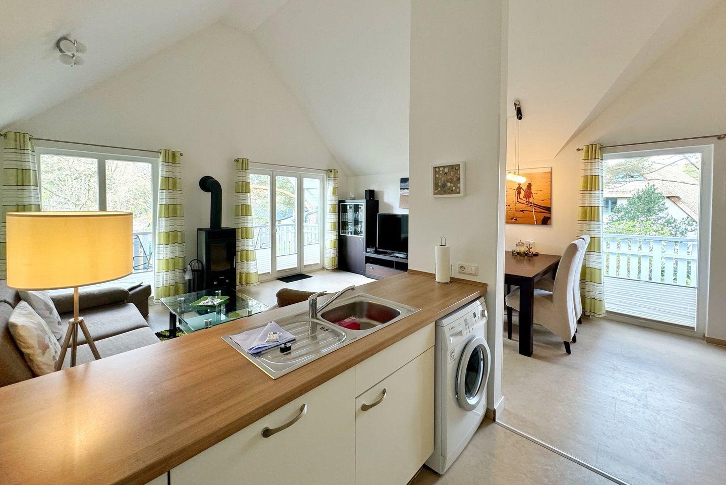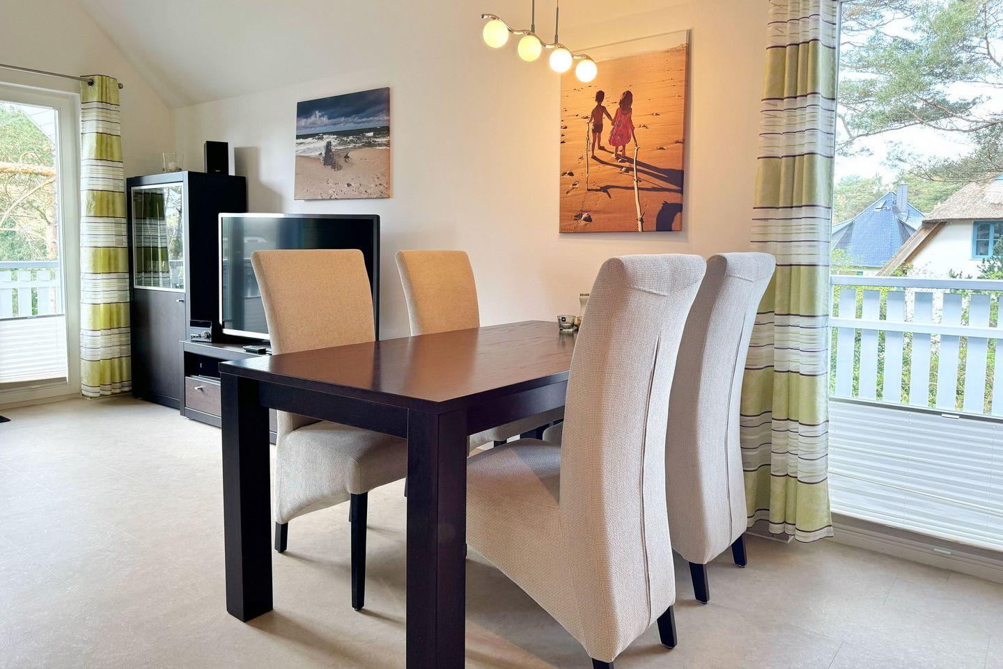 Das Apartment der Ferienhausanlage in Glowe befindet sich im 1. Obergeschoss in Süd-West-Lage; den Ostseestrand erreicht ihr in ca. 700 m.