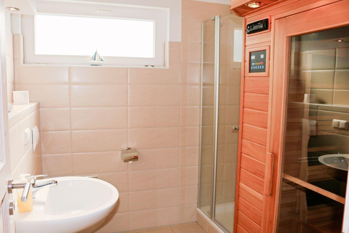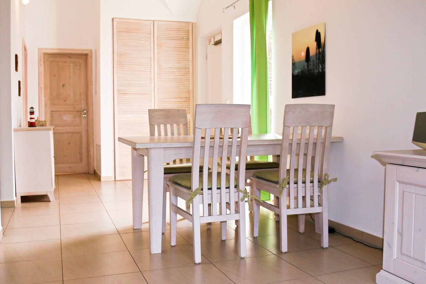 Modernes Familienapartment mit Sauna, Kaminofen und Balkon nahe dem Strand in Glowe.