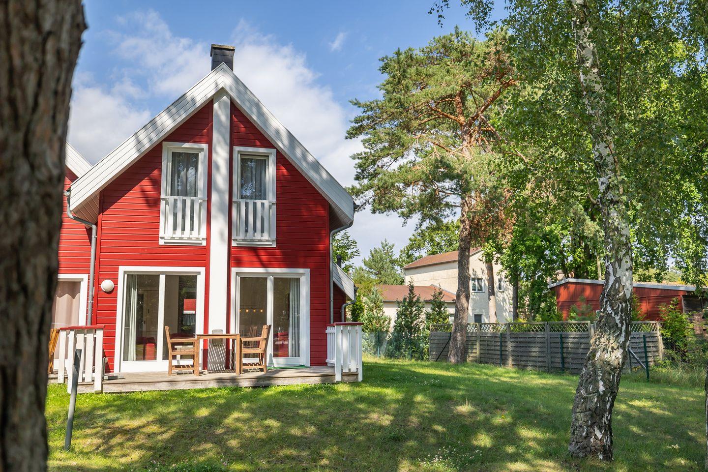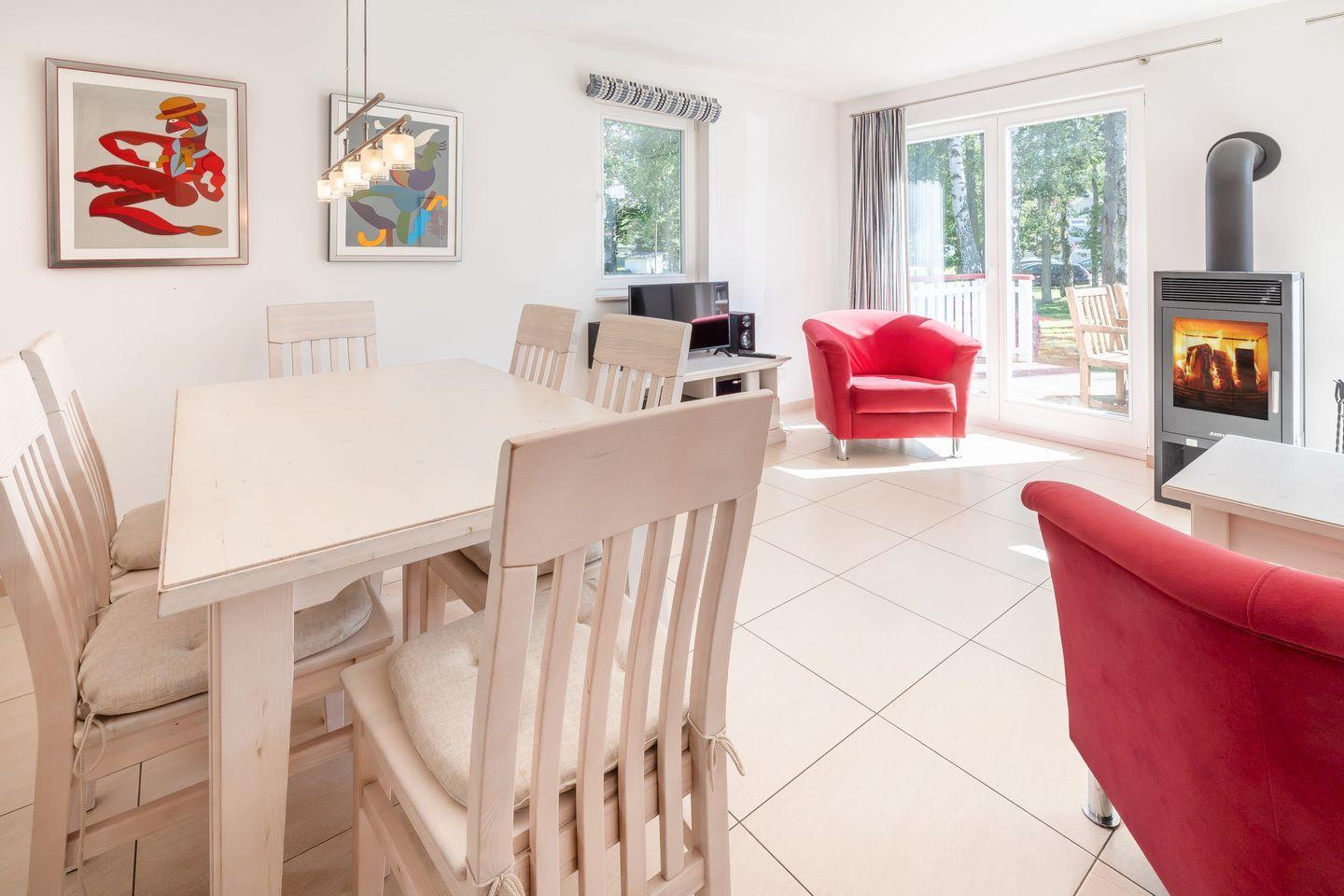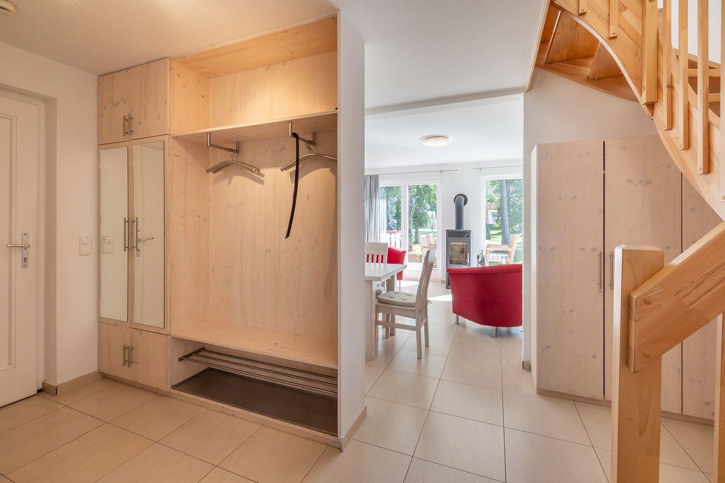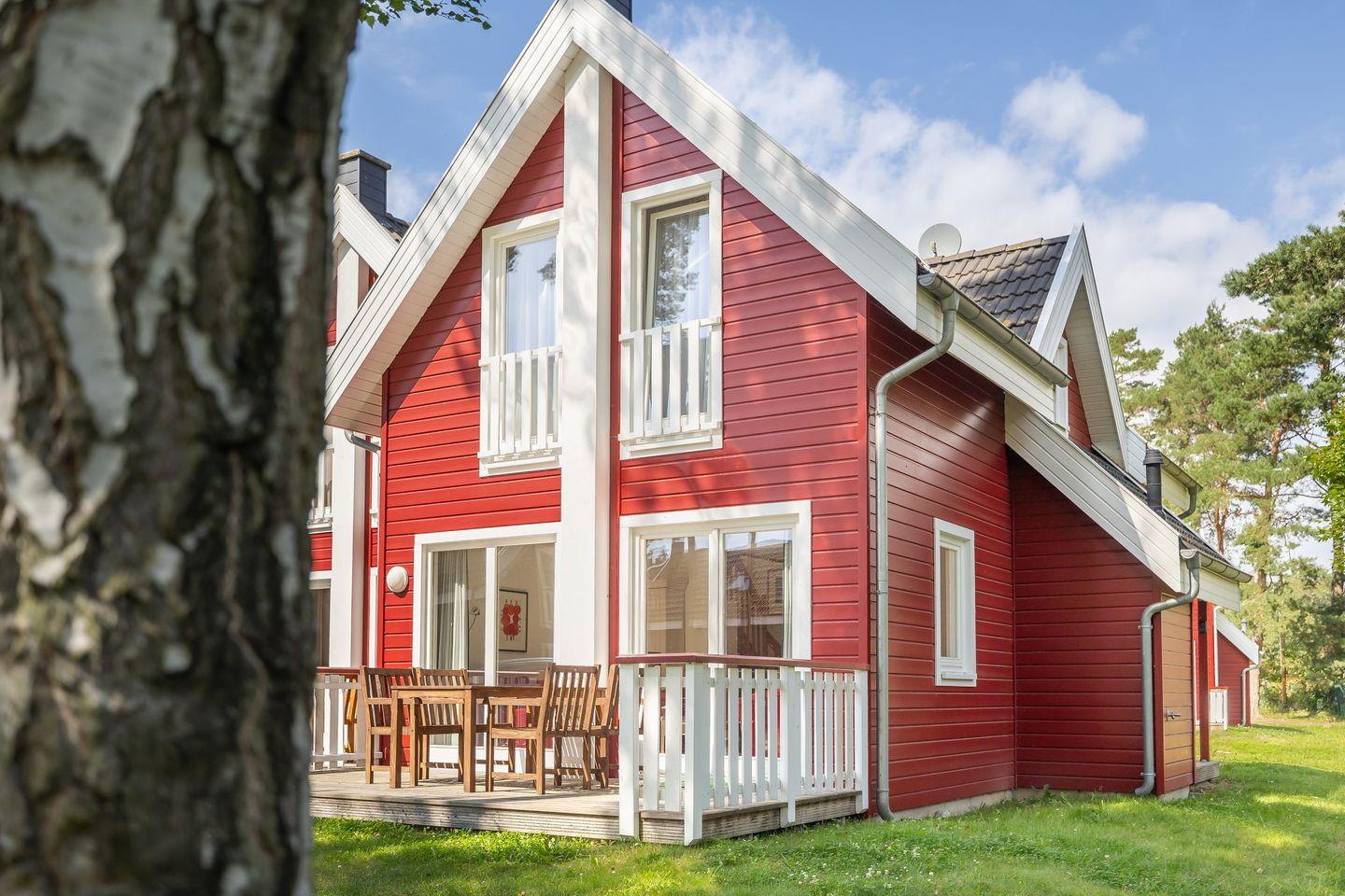Das Rügener Ferienhaus verläuft über zwei Etagen, liegt auf der Südseite der Anlage in Glowe und bietet euch einen Blick ins Grüne.
