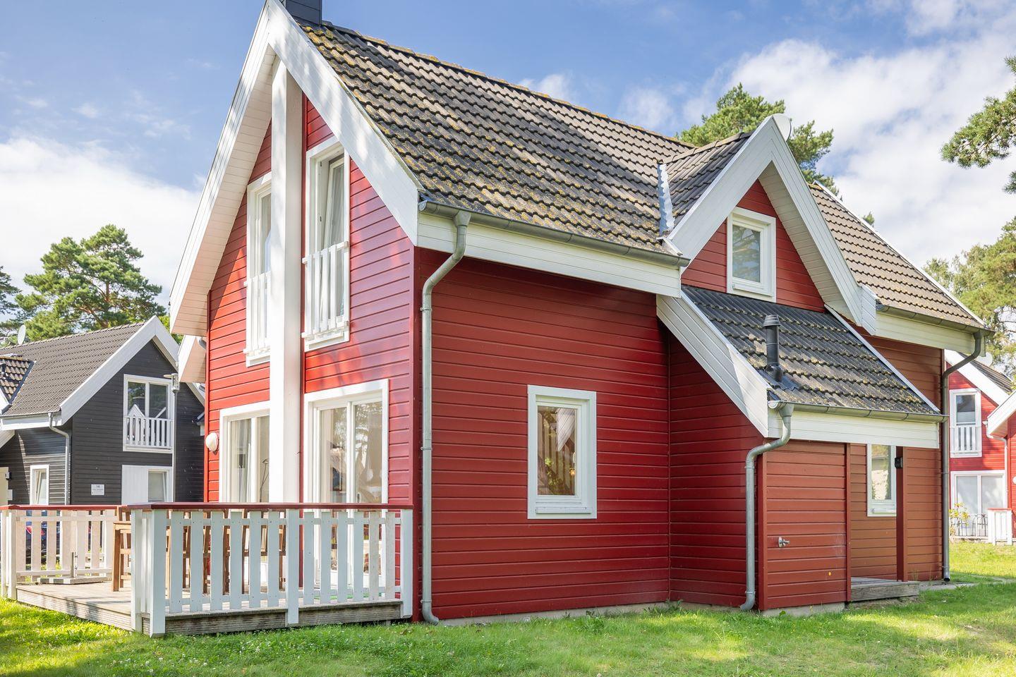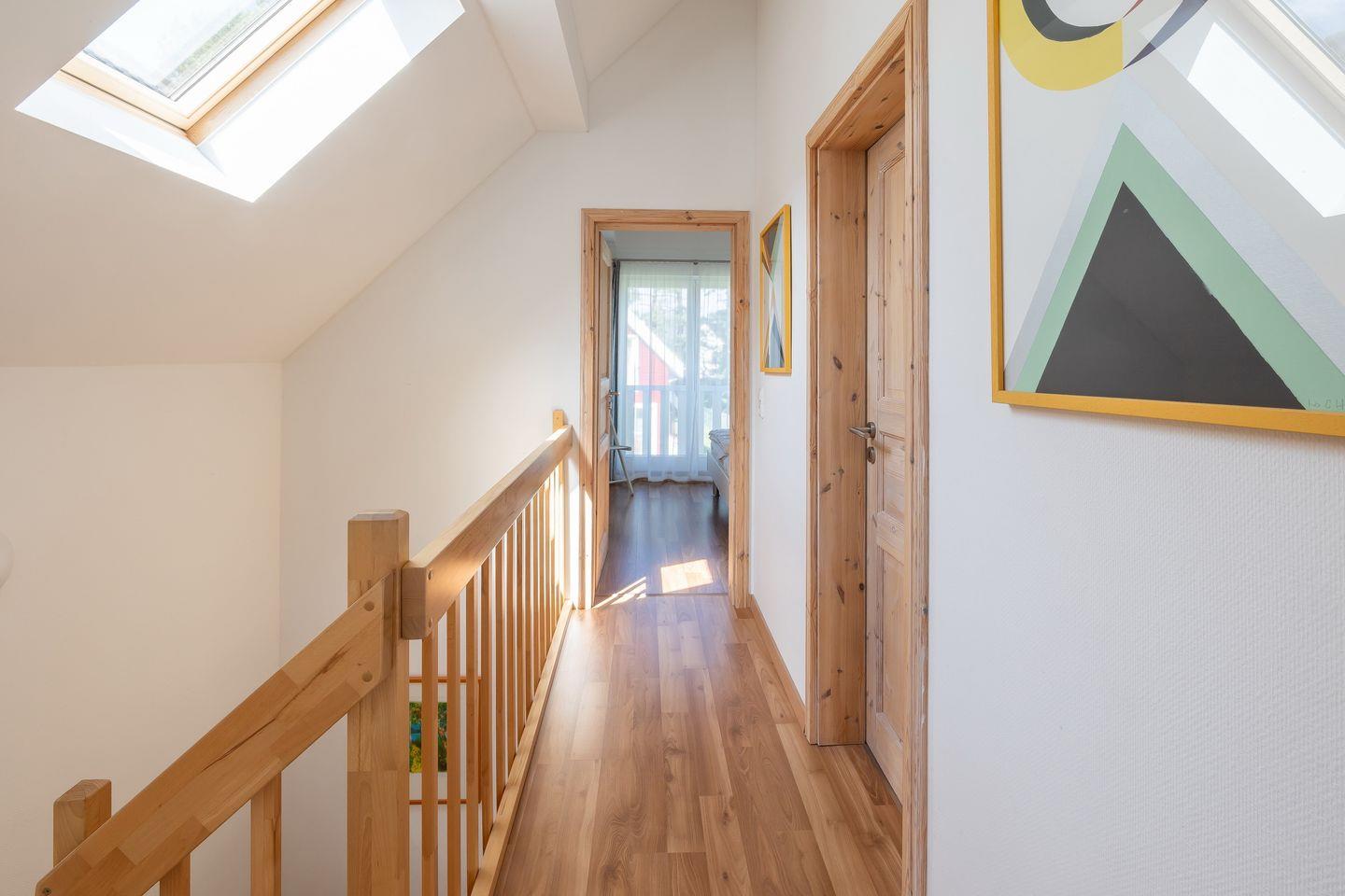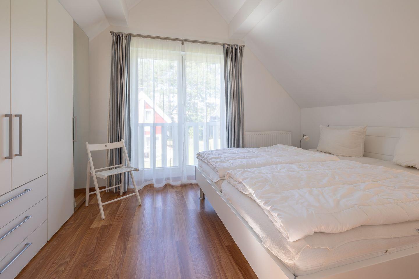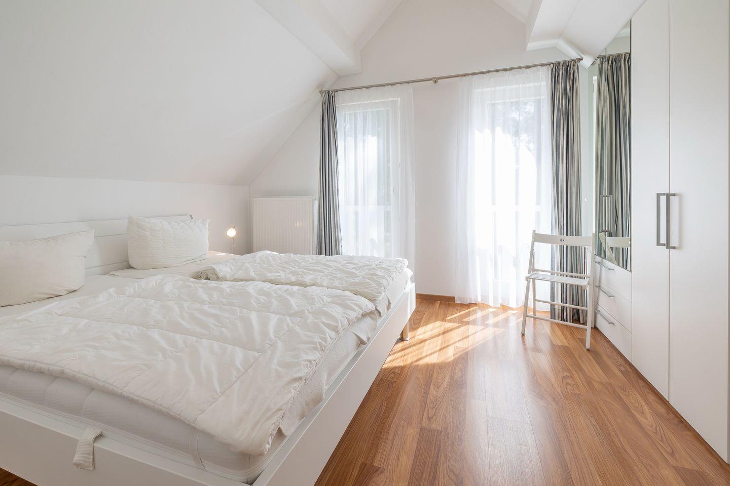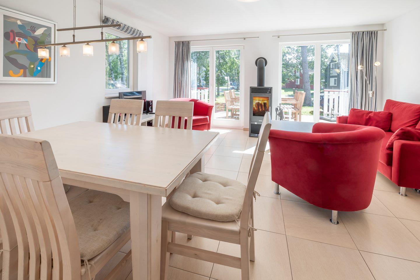 Das Rügener Ferienhaus verläuft über zwei Etagen, liegt auf der Südseite der Anlage in Glowe und bietet euch einen Blick ins Grüne.
