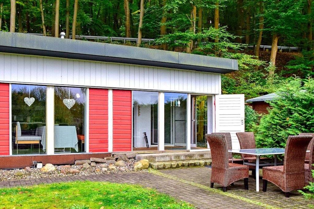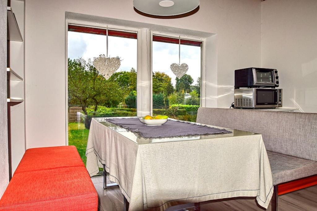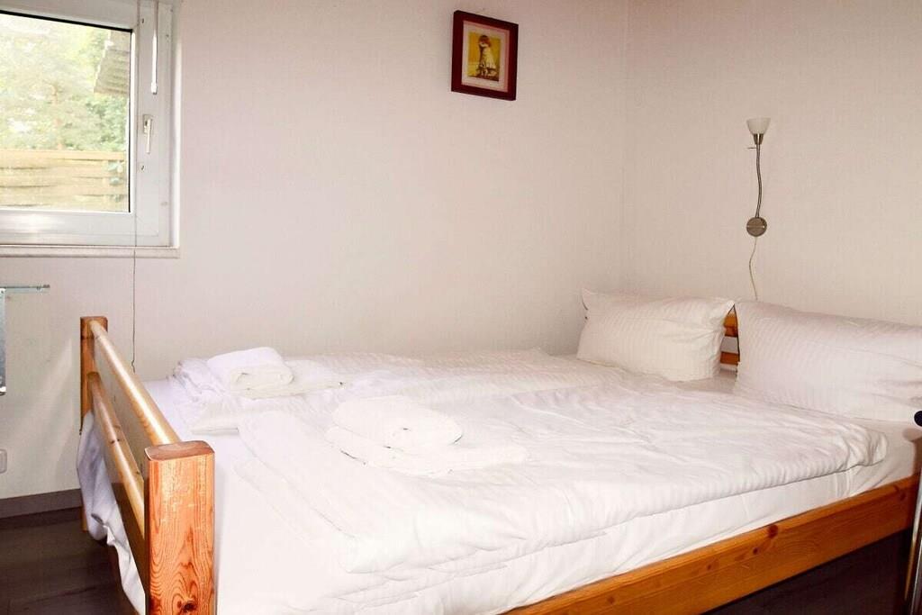 Unser idyllisches Strandhaus für Verliebte oder Abenteurer wird Ihnen gefallen. Auf einem großen, grünen Grundstück in ruhiger und naturnaher Lage finden Sie dieses kleine Paradies. Sie können sich auf dem ausziehbaren Schlafsofa mit einer Breite von 130 cm entspannen. In den beiden getrennten Schlafzimmern finden Sie jeweils ein Doppelbett mit 140 cm Breite, sodass Platz für maximal 6 Personen vorhanden ist. Für romantische und kältere Stunden lädt ein Kaminofen ein. Das Badezimmer verfügt über ein WC und eine Dusche. In unserer Ausstattung finden Sie alles, was Sie benötigen: LED-TV, kostenfreies WLAN, eine Küche mit Kühlschrank, zwei Induktionsplatten, Mikrowelle, Grillofen, Kaffeemaschine, Toaster, Wasserkocher und Küchenutensilien.