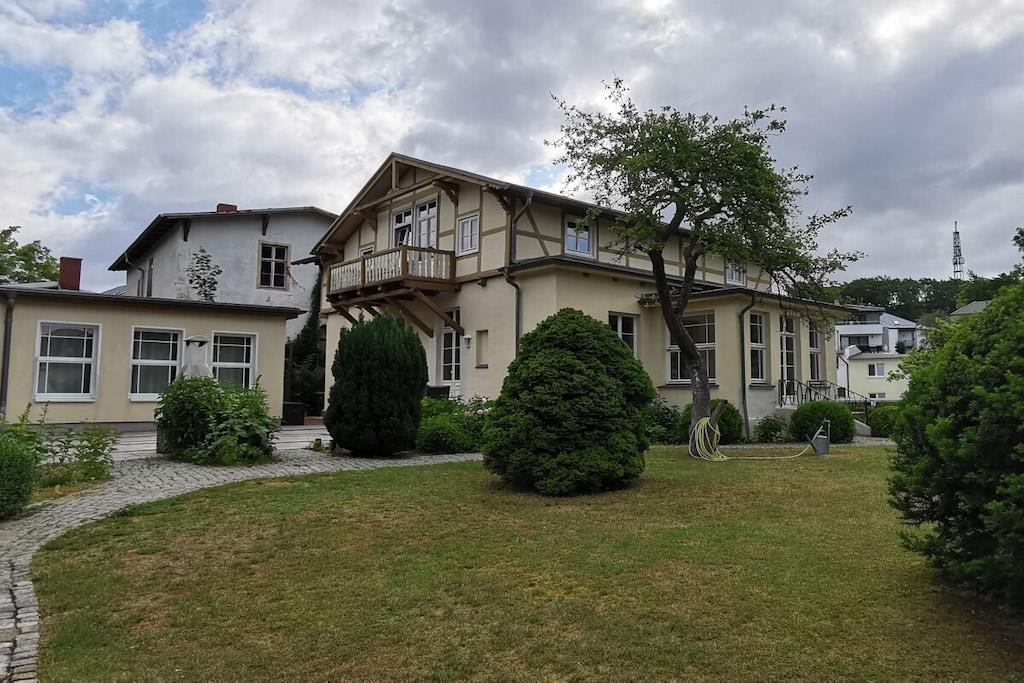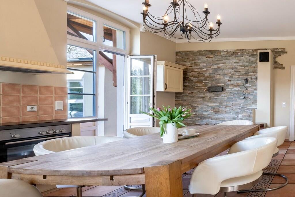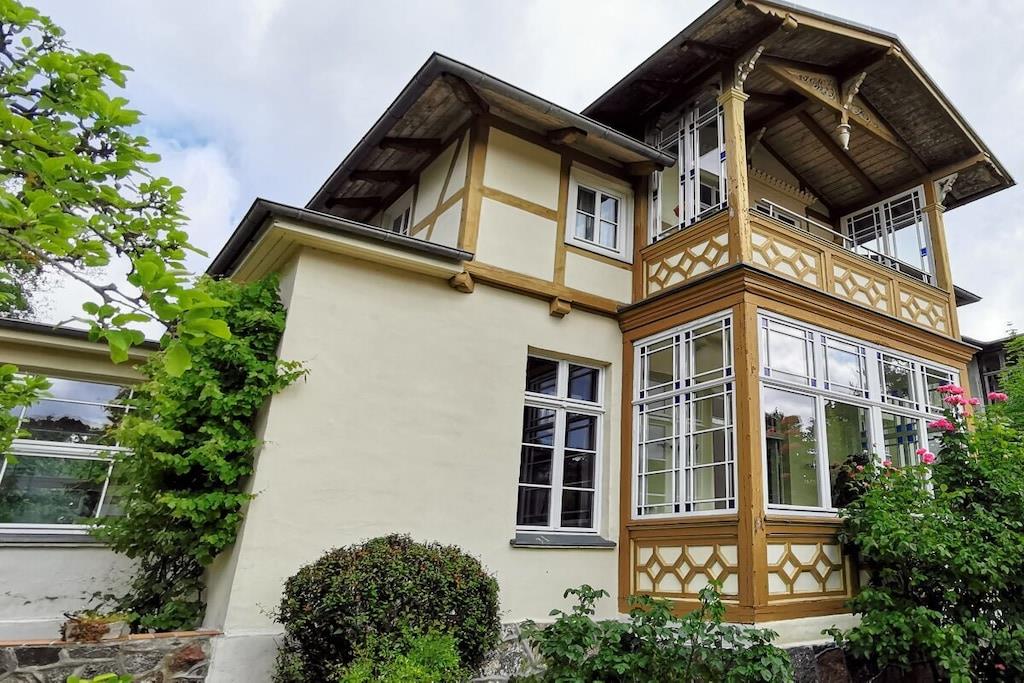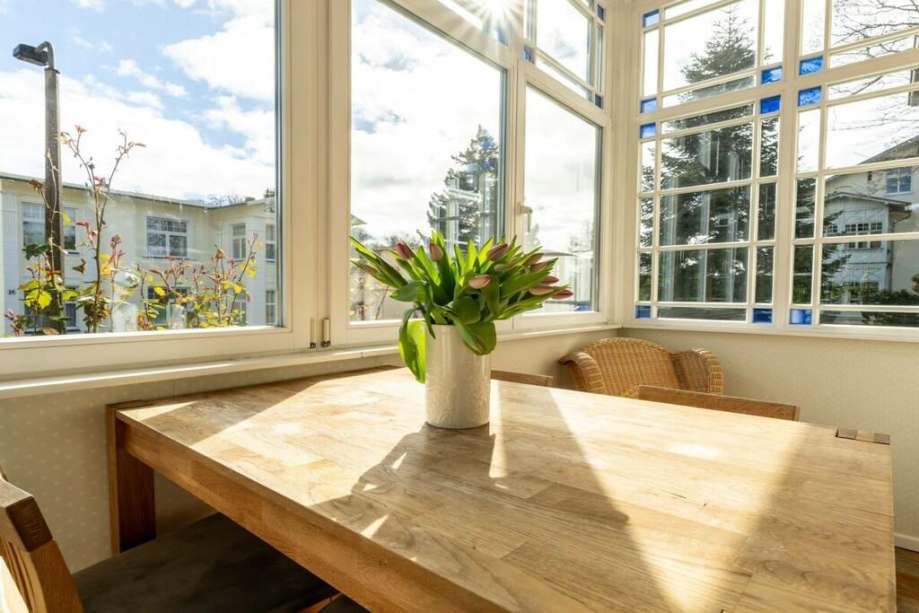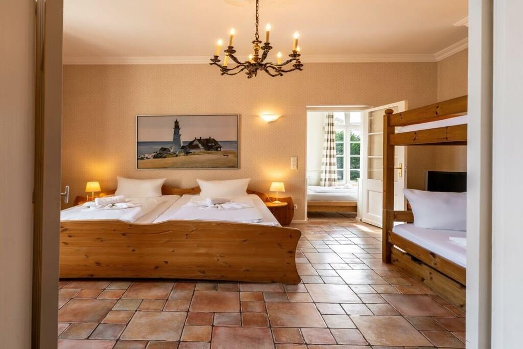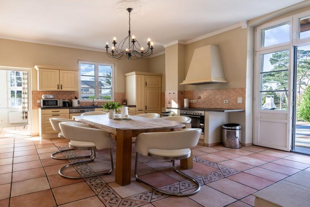 Die Fewo Salon bietet insgesamt sechs Schlafplätze. Im Schlafzimmer befinden sich ein großes Doppelbett (200x200) und ein Etagenbett (2x 90x200). In der abgeschlossenen Veranda können Sie auf einem Doppelbett (140x200) ruhen. Ein großer Einbaukamin lädt zum Ausklang eines romantischen Abends ein. Im modernen Bad sind eine Erlebnisdusche und ein Whirlpool zum Entspannen vorhanden. Weiterhin gibt es kleines separates Gäste-WC. Auf zwei großzügigen Terrassen können Sie das weitläufige Grundstück genießen. Es gibt einen separaten Stellplatz und Unterstellmöglichkeit für Fahrräder. Auf dem Grundstück der Villa gibt es vier weitere Wohneinheiten mit insgesamt 10 weiteren Schlafplätzen, die auch zusammen gebucht werden können.