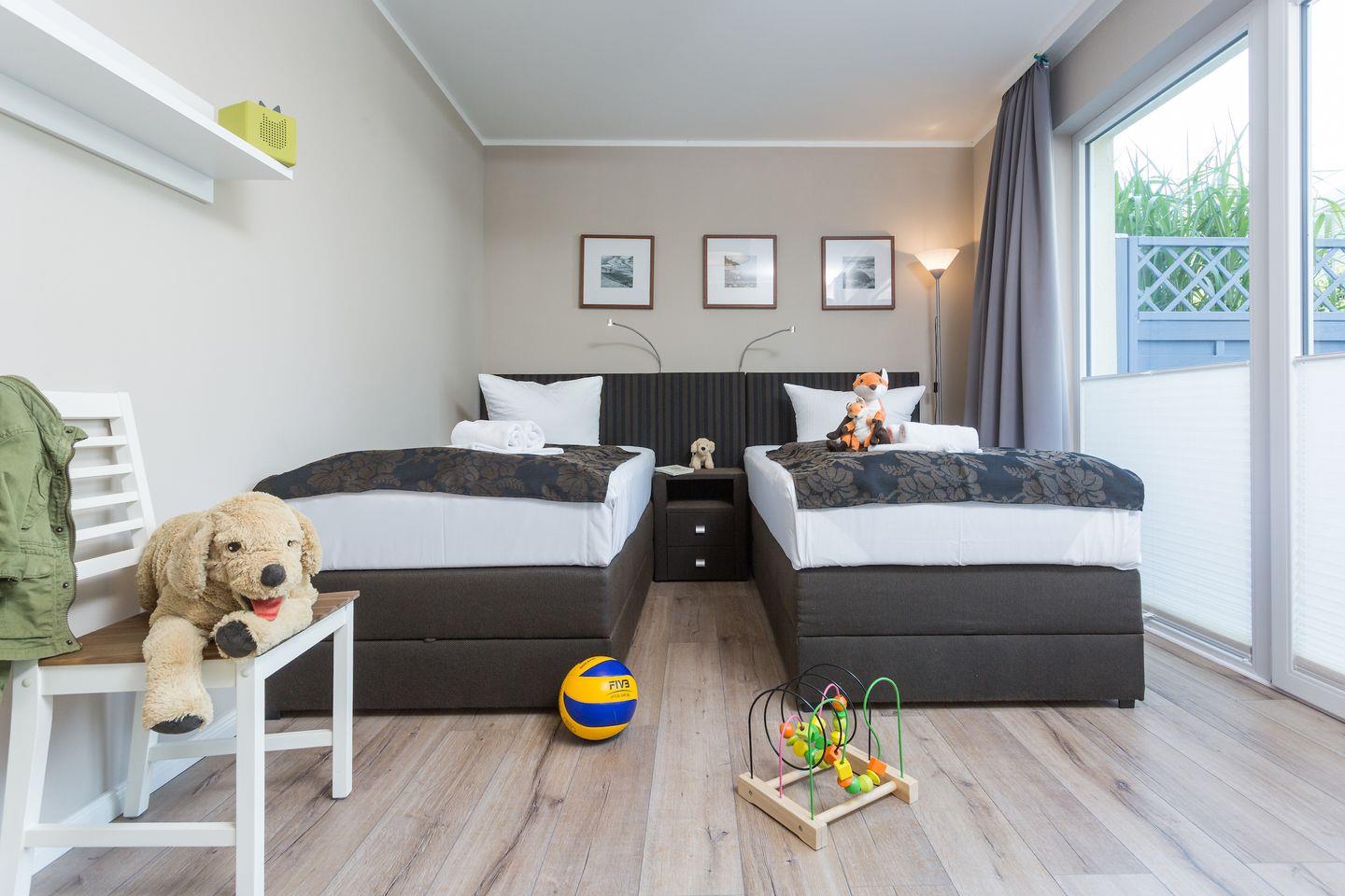 - 2 x Einzelbett (Offenes Fußteil)