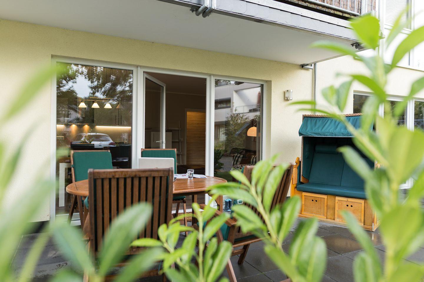 Moderne Ferienwohnung "Strandnah" im Ostseebad Juliusruh, nur 100 m vom Strand entfernt mit Terrasse und Garten.