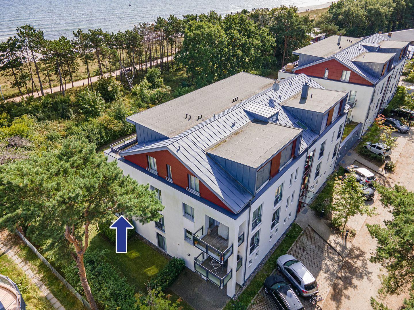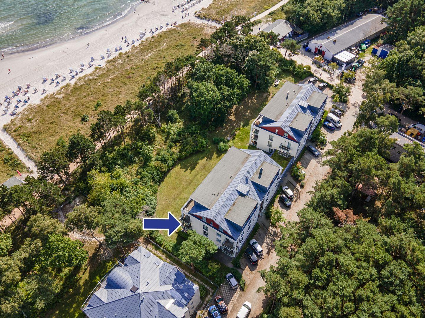 Das Appartementhaus steht direkt hinter der Düne am schönsten Sandstrand Rügens, der 11 km langen Schaabe. Im Haus gibt es einen Aufzug und einen Keller für die Fahrräder.