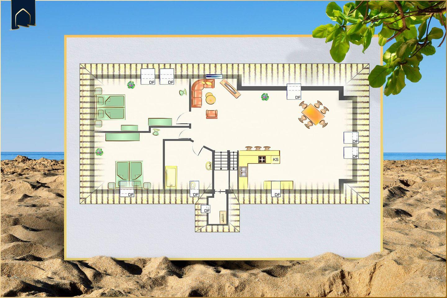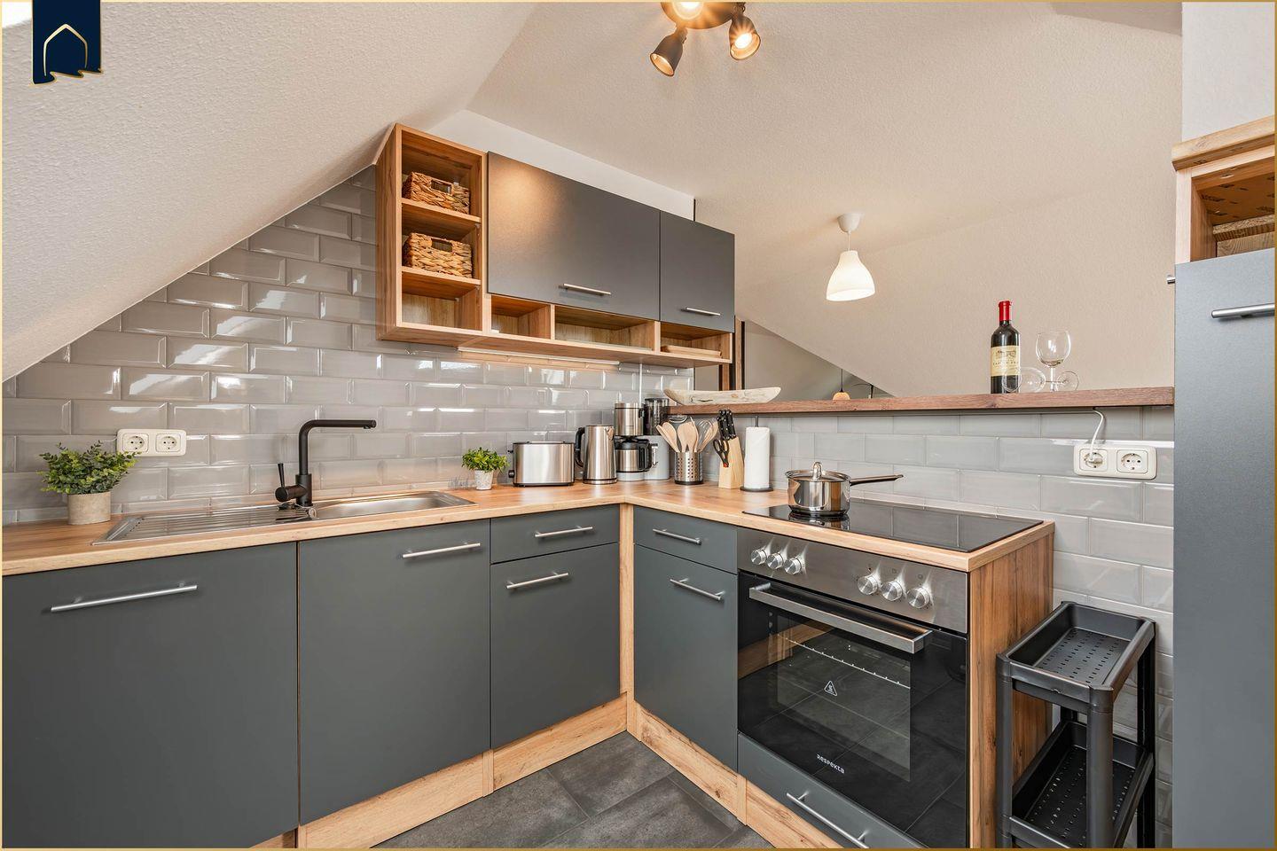 Die vollständig ausgestattete Küche ermöglicht eine unkomplizierte Selbstversorgung während Ihres Aufenthalts. Ob gemütliches Frühstück vor dem Strandbesuch oder ein gemeinsames Abendessen – hier finden Sie alles, was Sie für Ihren Urlaub benötigen.