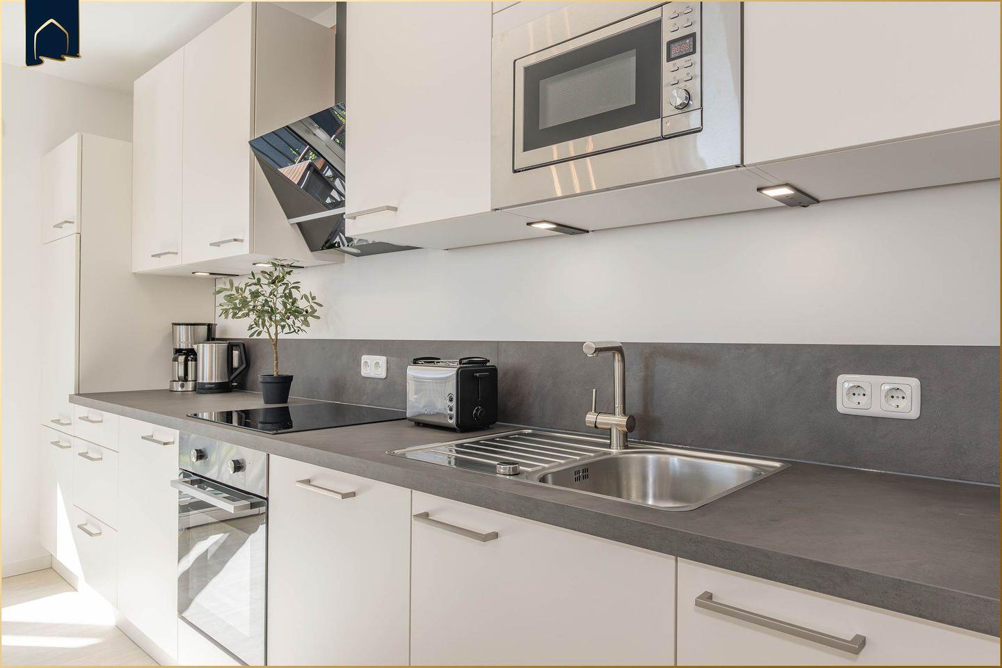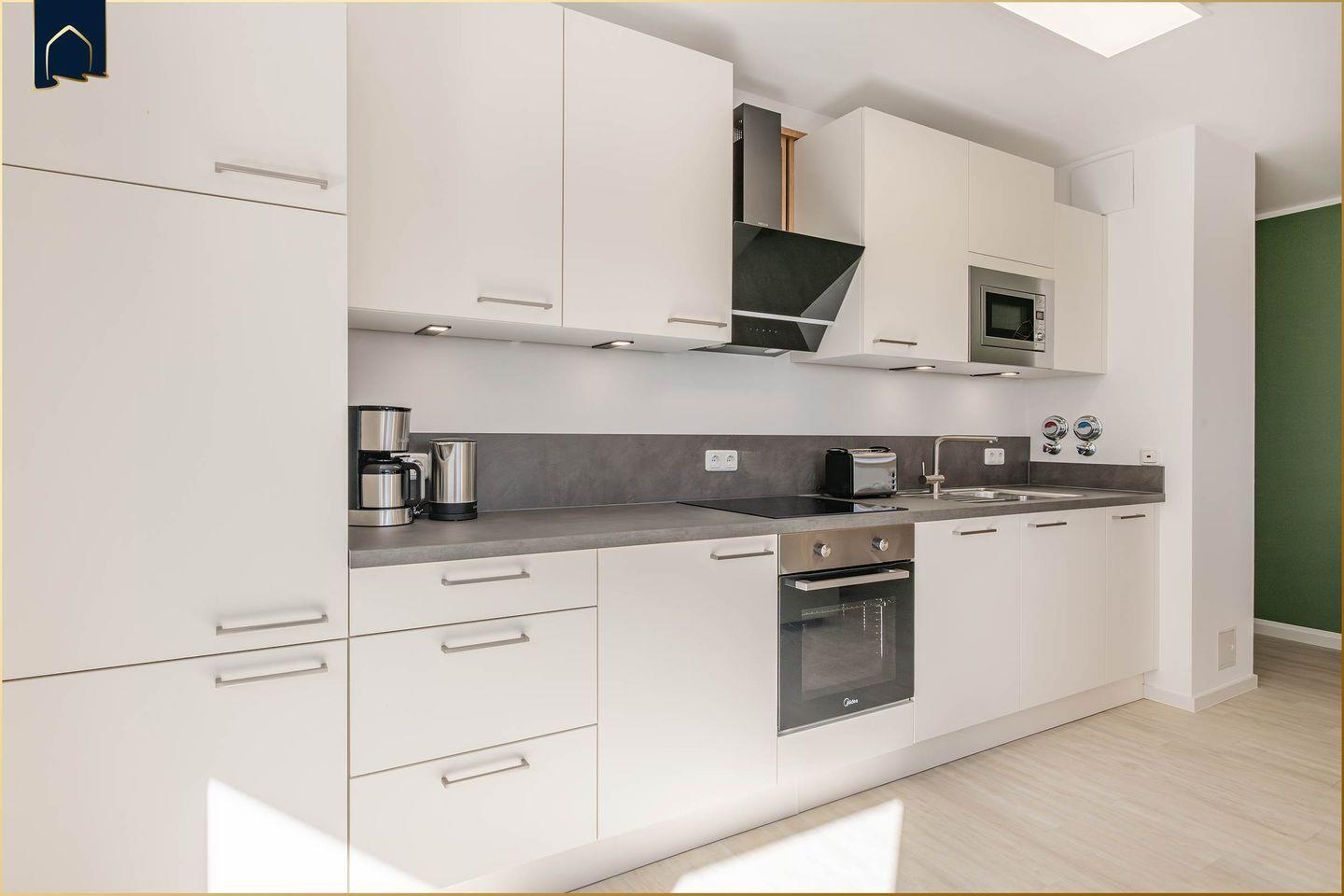Dank Fußbodenheizung, WLAN, Waschmaschine, Trockner und voll ausgestatteter Küche mit Backofen, Herd, Mikrowelle, Spülmaschine, Kaffeemaschine und weiteren Annehmlichkeiten lässt das Appartement keine Wünsche offen. Spiele für Groß und Klein, ein Esstisch für gemeinsame Mahlzeiten und Sichtschutz an allen Fenstern runden das Angebot ab.