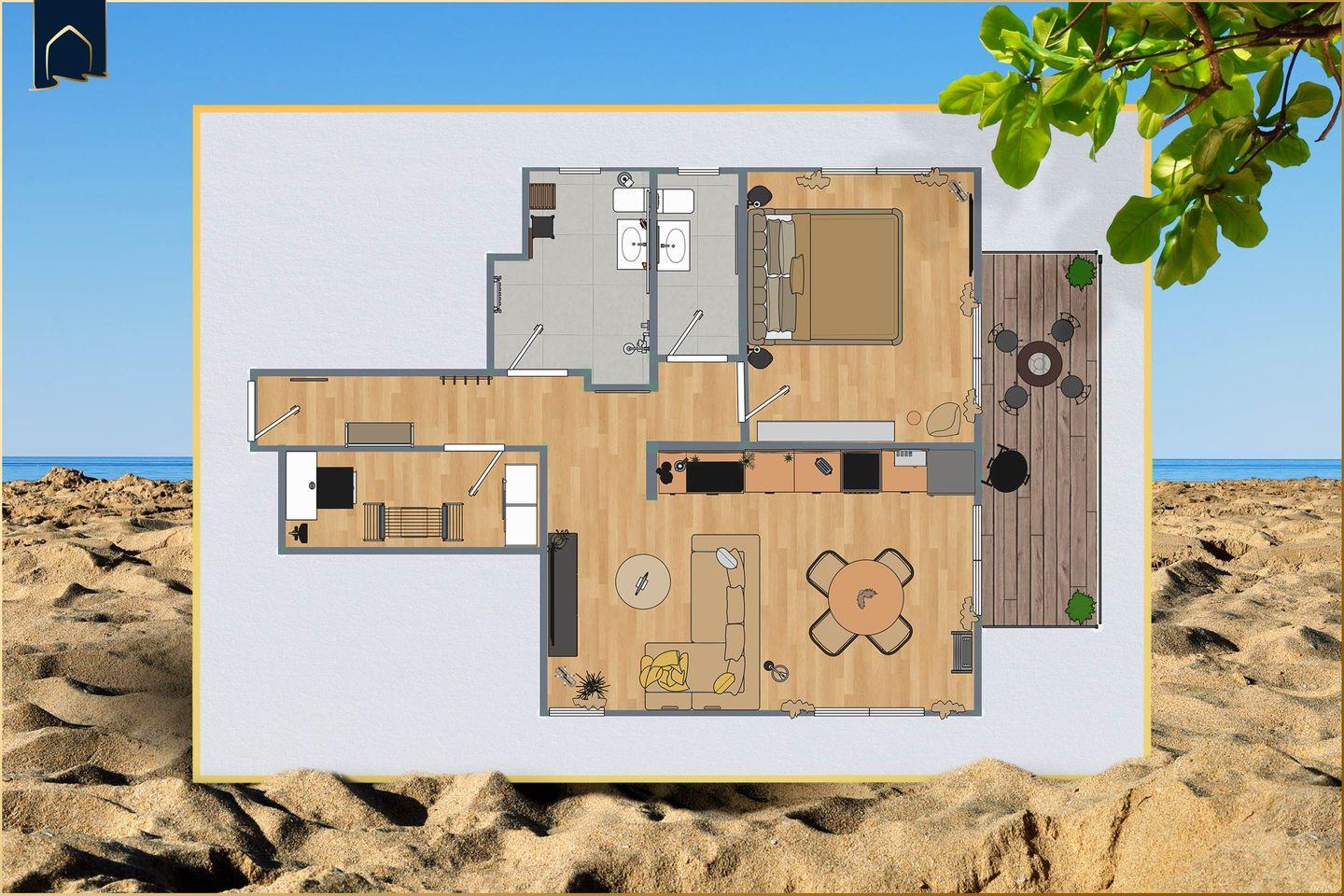 Moderne Blaubarschbude mit Balkon – nur 800?m zum Strand