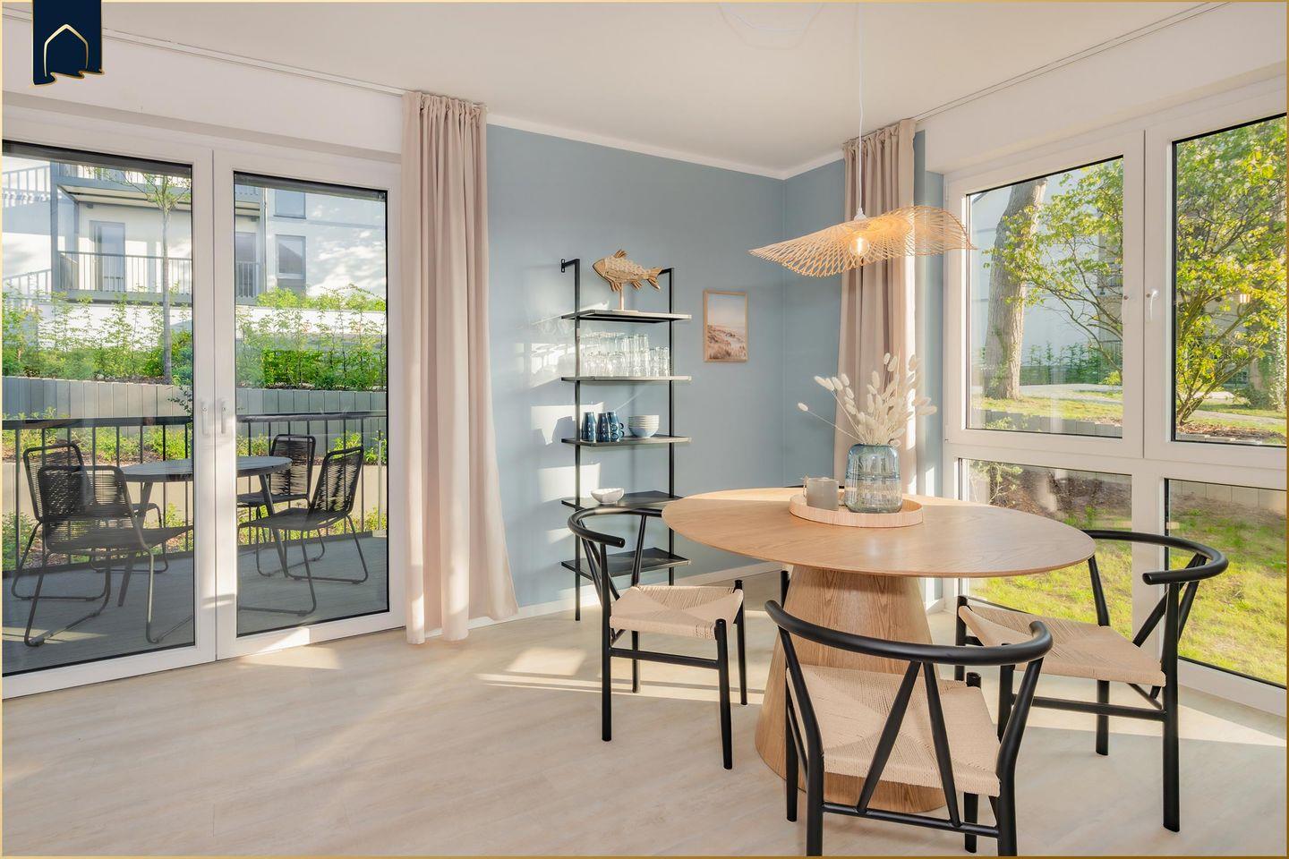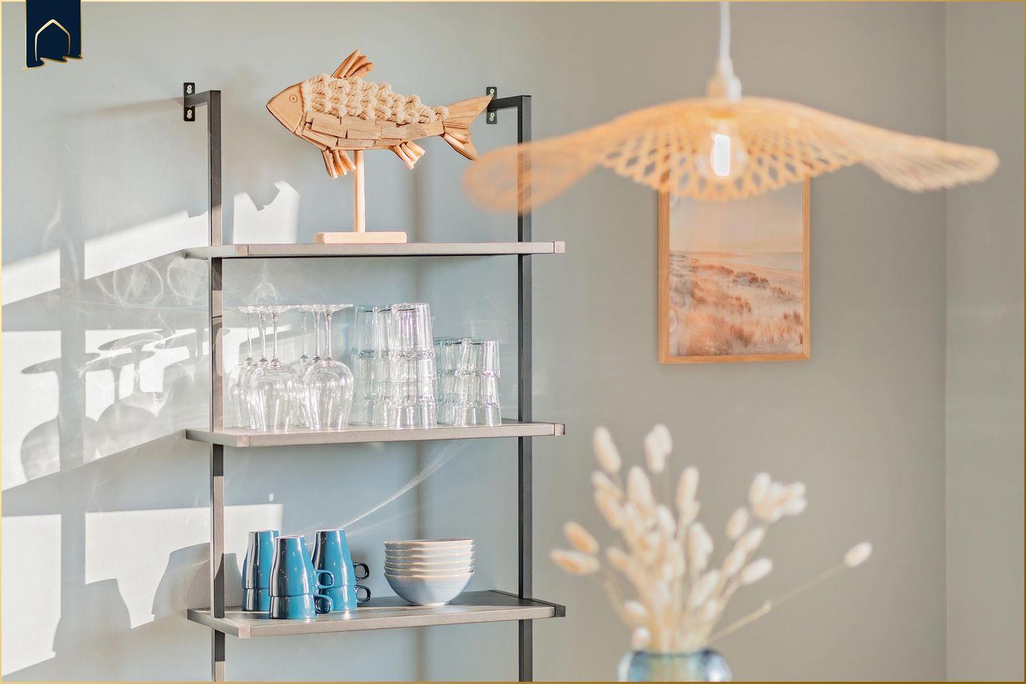 Die Blaubarschbude liegt im Erdgeschoss von Haus 2 im Bernsteinquartier und ist mit ihren extrabreiten Türen, schwellenlosen Übergängen und der offenen Dusche rollstuhlfreundlich konzipiert. Direkt vor der Tür wartet ein privater Parkplatz mit extrabreitem Ausladebereich auf dich – bequemer geht’s kaum!