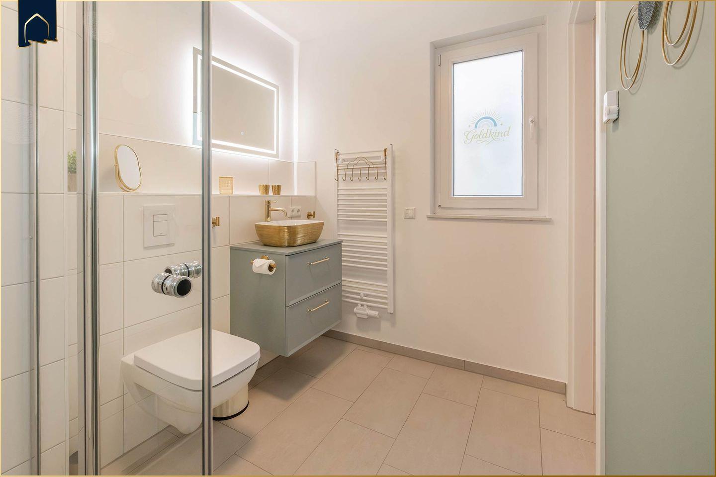 Die Ferienwohnung Goldkind im Ostseebad Kölpinsee auf der Insel Usedom steht für stilvolles Wohnen in strandnaher Lage. Die harmonische Kombination aus warmen Farbtönen, klaren Linien und gezielt eingesetzten goldenen Akzenten verleiht der Wohnung eine besondere Ausstrahlung und sorgt für eine elegante, zugleich einladende Urlaubsatmosphäre. Hier treffen modernes Design und entspannter Ostseecharme aufeinander.