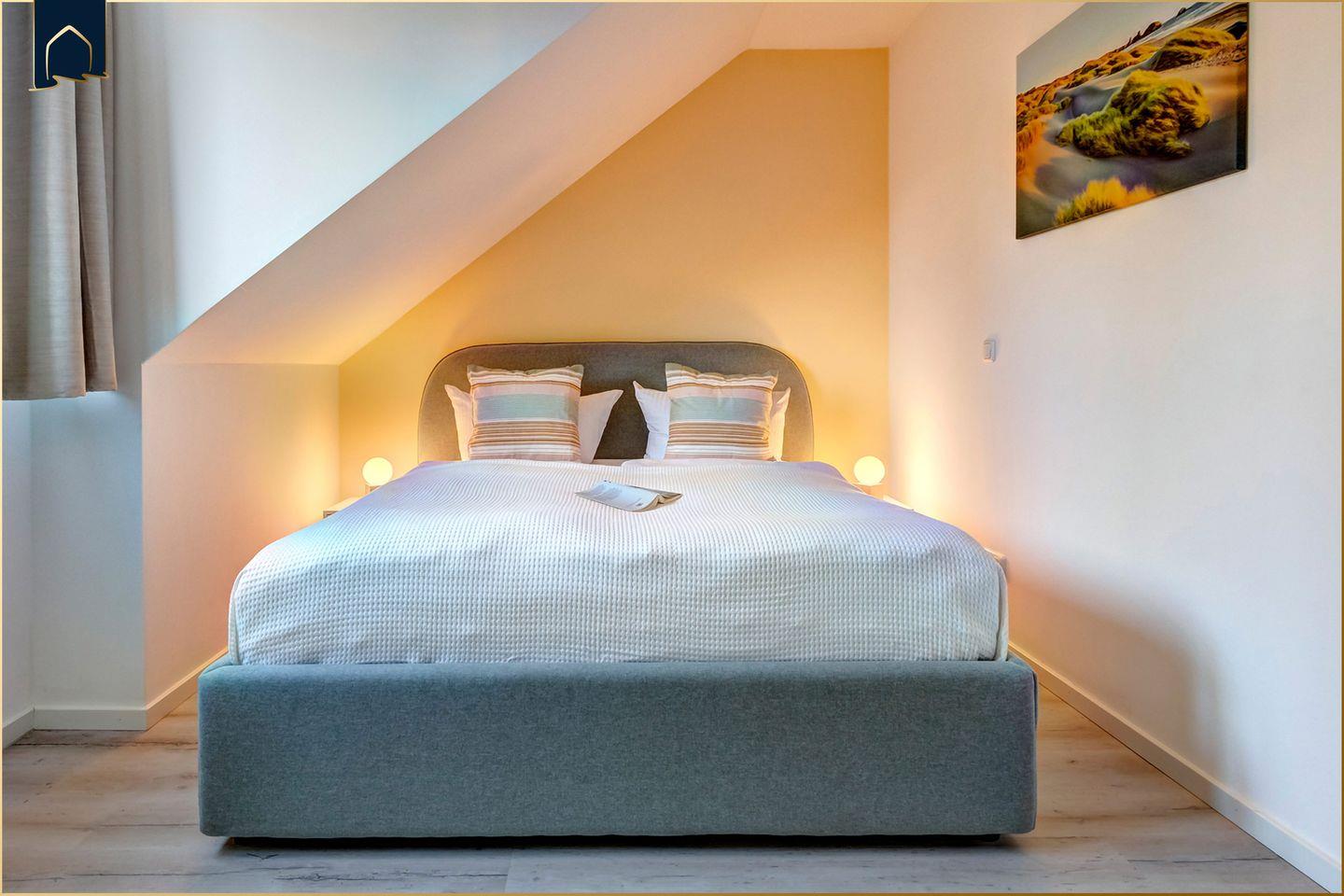 Das Reihenhaus bietet zwei Schlafzimmer mit Doppelbetten sowie zusätzliche Schlafmöglichkeiten auf dem Schlafsofa, sodass insgesamt sechs Schlafplätze zur Verfügung stehen. Die Schlafzimmer sind ruhig gelegen und bieten angenehme Rückzugsmöglichkeiten.