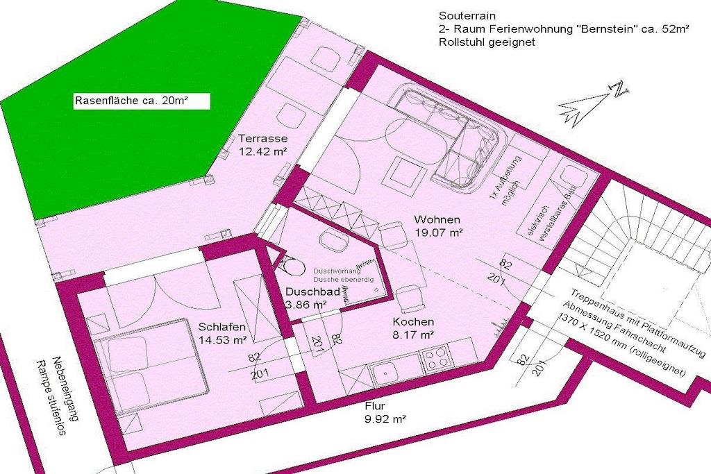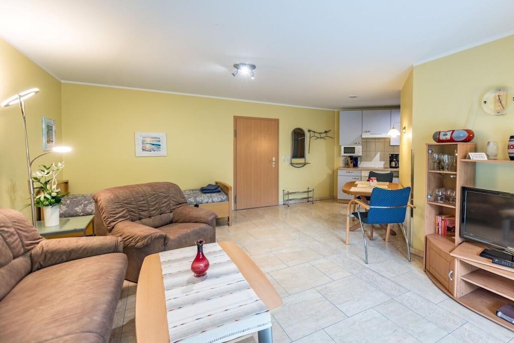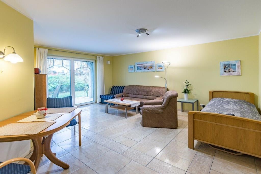 Unsere 2-Raum Ferienwohnung "Bernstein" zeichnet sich durch die tolle Lage in Kühungsborn-West aus. Hier können Sie Ihren Urlaub genießen und das Auto auch mal stehen lassen. Der Strand, die lange Promenade, Restaurants, Einkaufsmöglichkeiten, und vieles mehr sind in wenigen Metern fußläufig erreichbar. Die Wohnung befindet sich im Souterrain mit eigener, sonniger Terrasse, die zum Verweilen einlädt. Im Schlafzimmer ist ein Boxspringbett (180x200) und im Wohnzimmer ein zusätzliches, elektrisch verstellbares Bett, wodurch die Wohnung sich auch gut für Senioren und Rollstuhlfahrer eignet. Die Dusche ist ebenerdig und das WC ist erhöht. Auf Wunsch können Bettwäsche (20,00EURO/Gast) und Handtücher (10,00EURO/Gast) dazu gebucht werden.