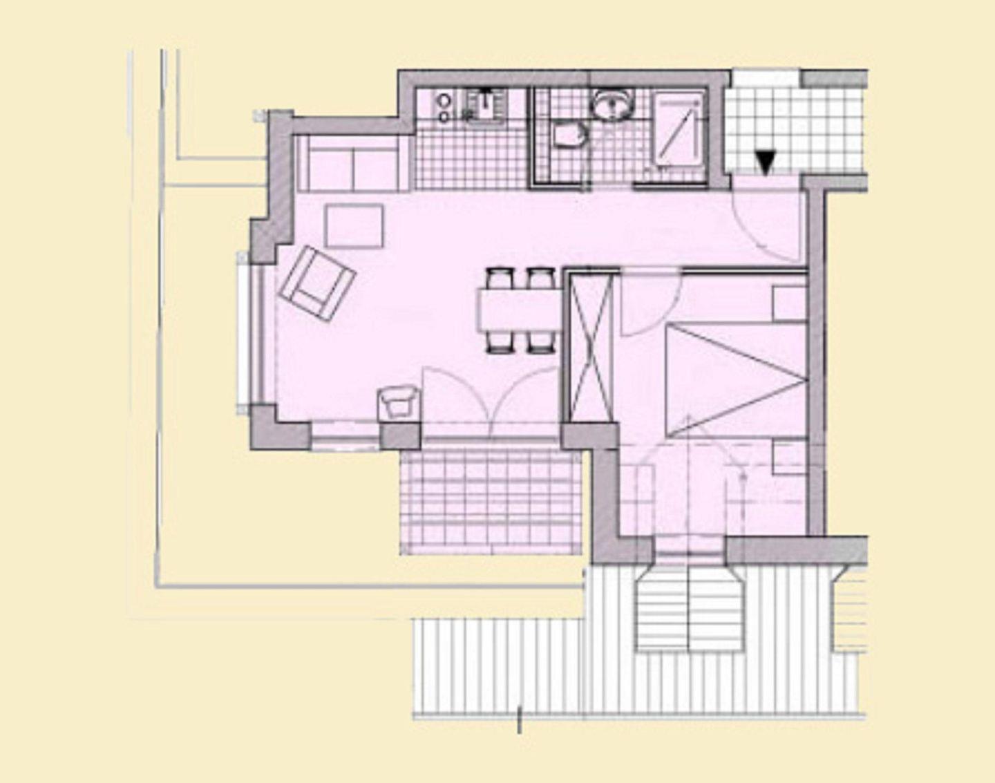 Die schnuckelige ca. 40 qm große 2-Zimmer-Ferienwohnung befindet sich in der 3. Etage und ist über den Personenaufzug leicht zu erreichen.