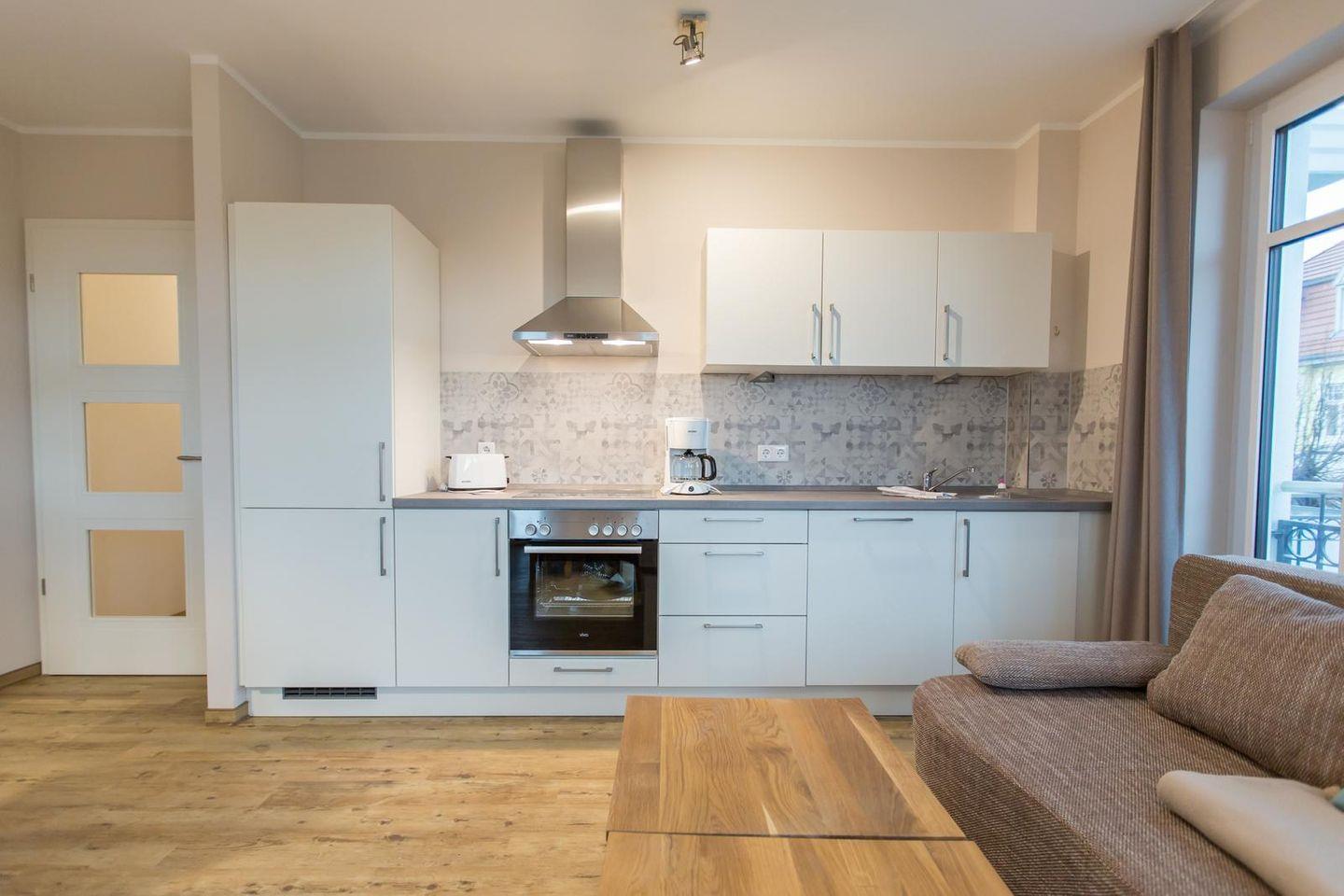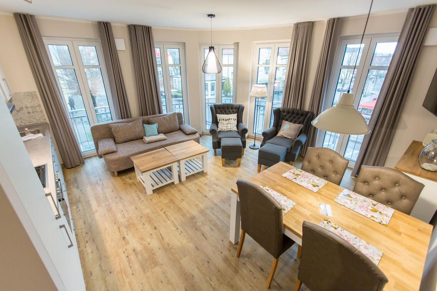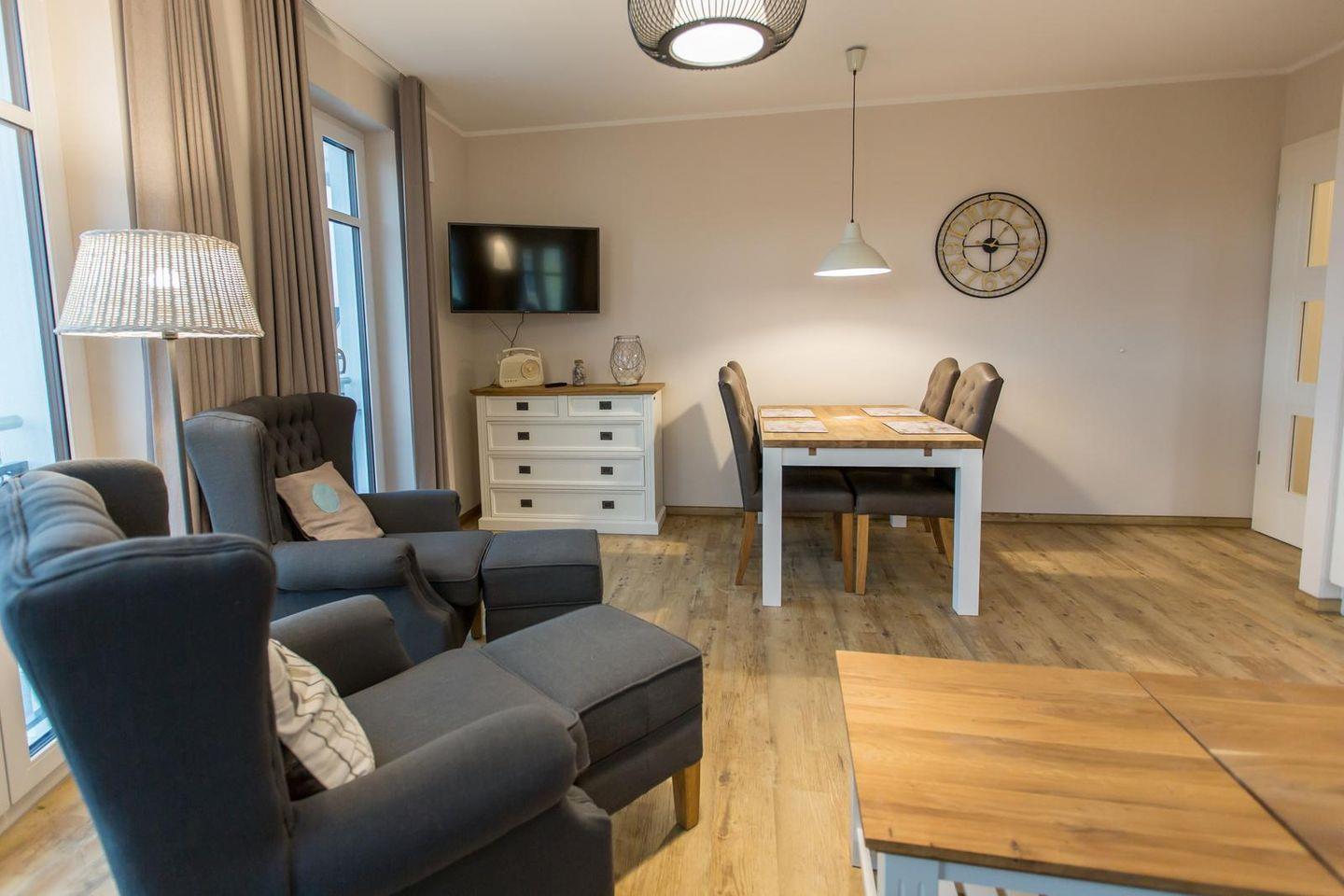 Modernes 3-Zimmer-Apartment im Herzen von Kühlungsborn mit Balkon und Sauna, ideal für entspannte Ostseeferien.
