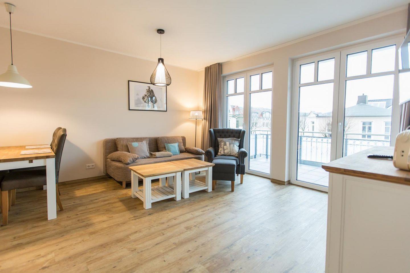 Moderne 3-Zimmer-Ferienwohnung mit Balkon im Haus Sunnevelt, zentral im Ostseebad Kühlungsborn nahe Strand und Flaniermeile.