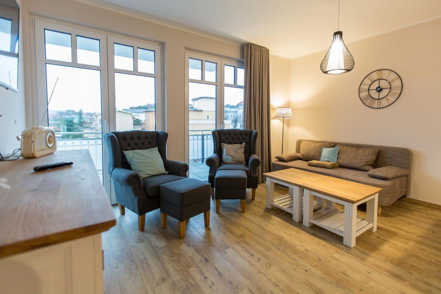 Modernes 3-Zimmer-Apartment mit Balkon, Sauna und Tiefgarage im Herzen von Kühlungsborn, nur 700 m vom Strand entfernt.